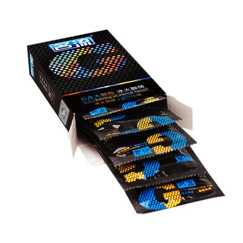 10 шт./кор. 100% оригинальный большой точечный G-Spot Стимуляция огня и льда ожесточенный страстный секс смазывание натуральная латексная резина презервативы