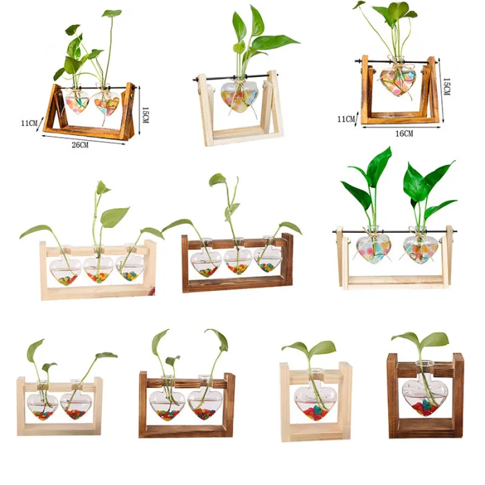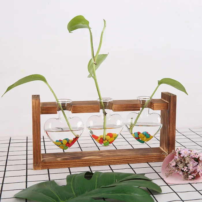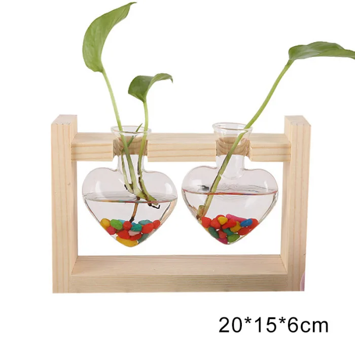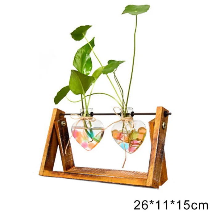 Высокий стеклянный гидропонный завод ваза растительный Террариум с деревянной подставкой офисные домашние украшения LG66