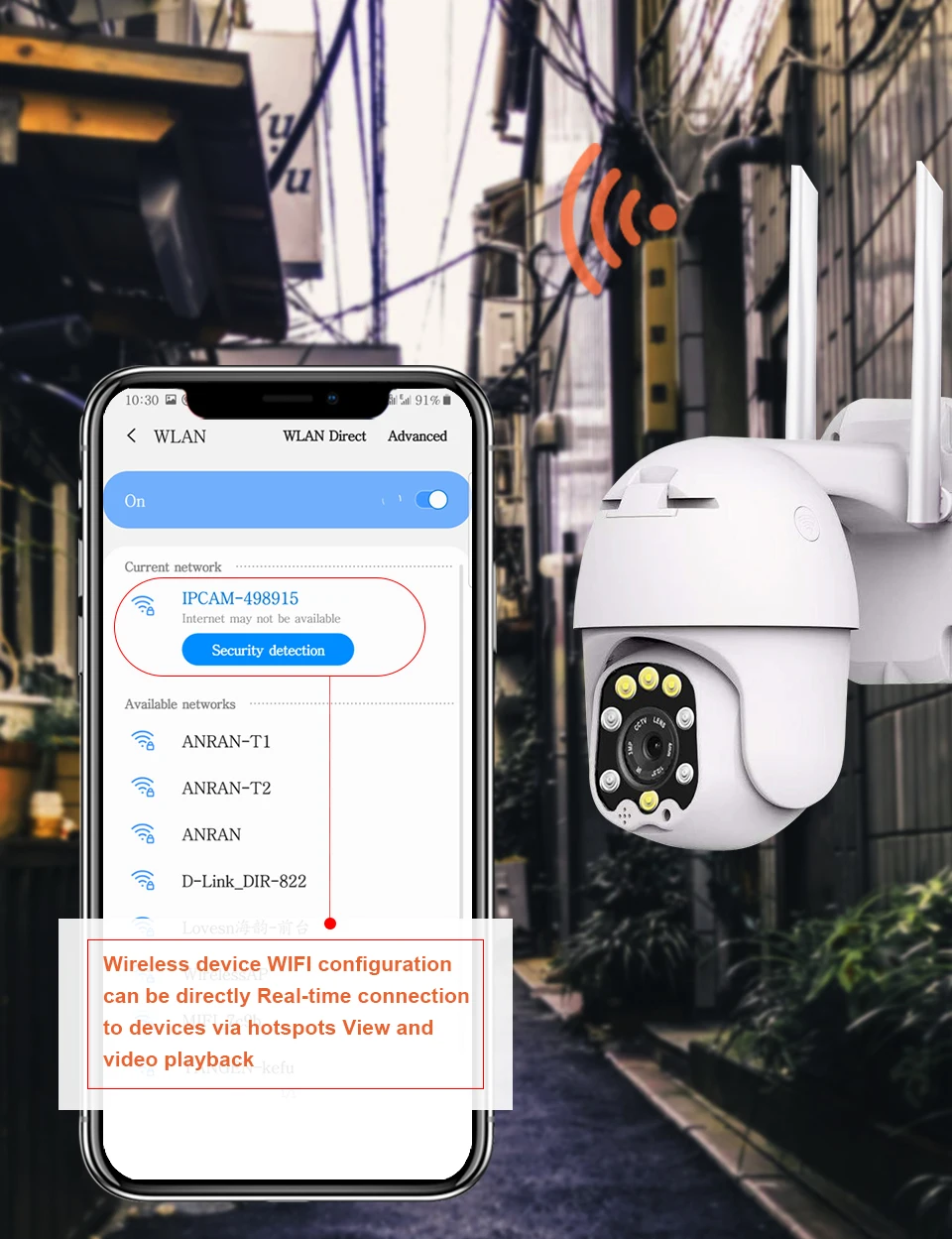 Что, если ваша камера отключится от сети? Не волнуйтесь! Наша камера имеет встроенный AP wifi, вы все еще можете подключиться к камере AP wifi для просмотра его около 20 м.