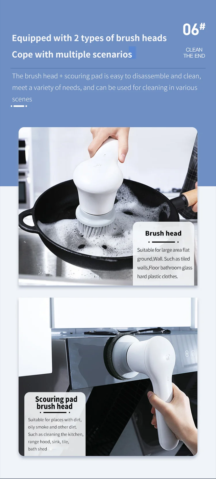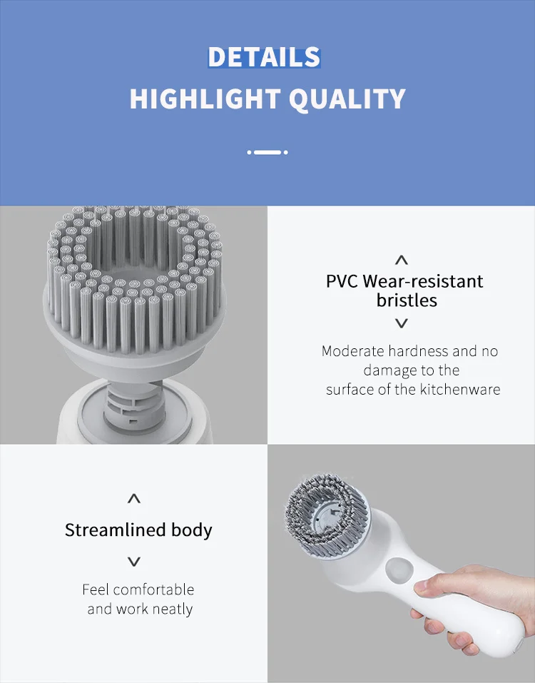 Запустите стиральную машину одним щелчком, кисть с плоской головкой вращается на высокой скорости, сильно удаляет упрямые пятна от кухонной смазки и может очистить руки зимой