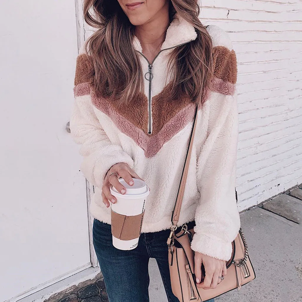 Женская фланелевая толстовка на молнии с длинным рукавом в стиле пэчворк, пуловер, блузка