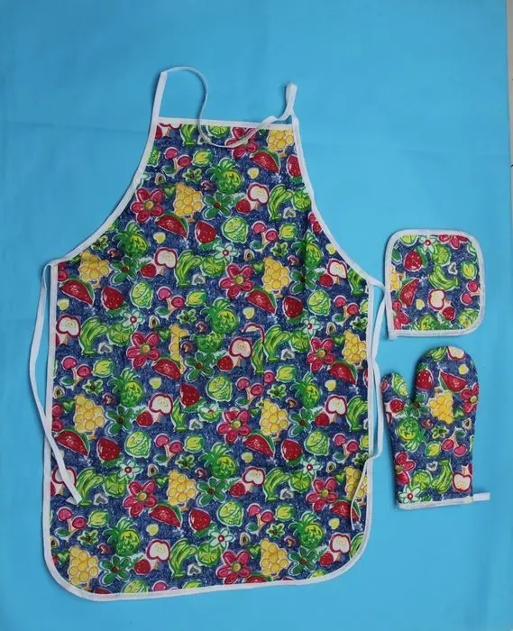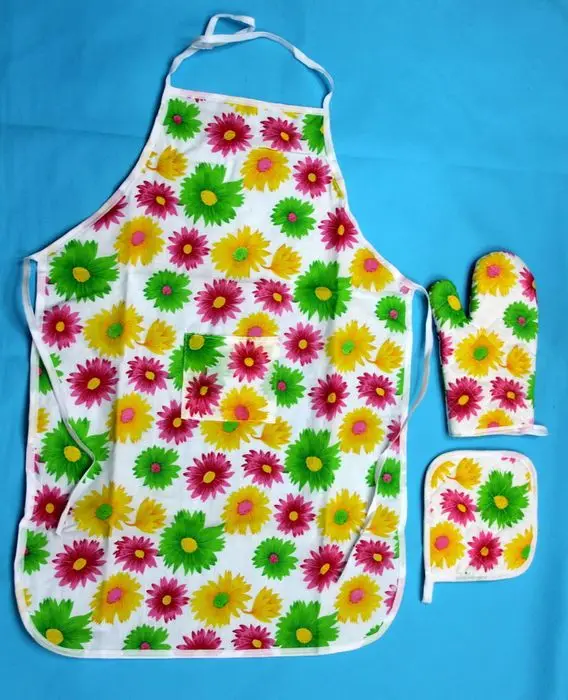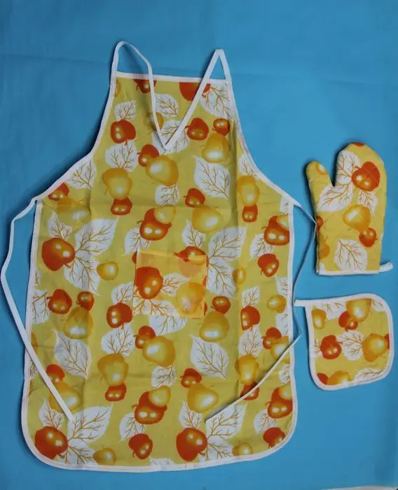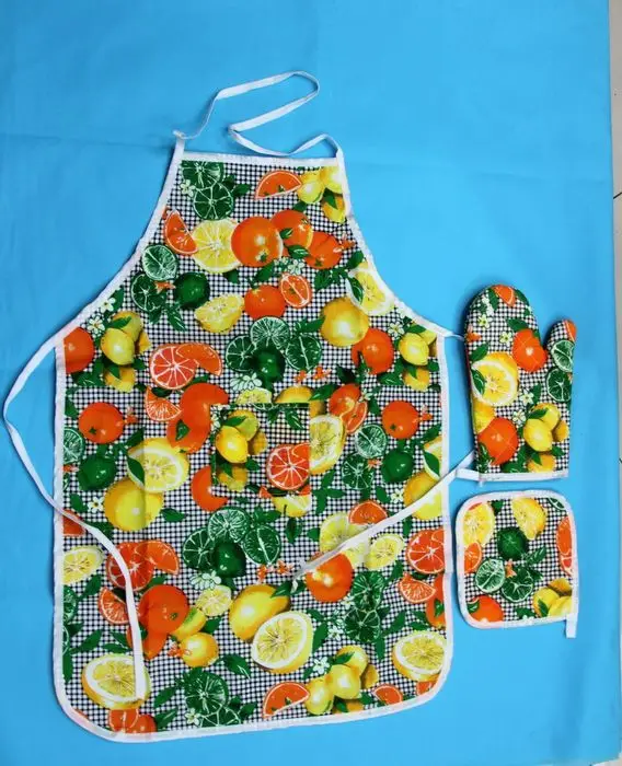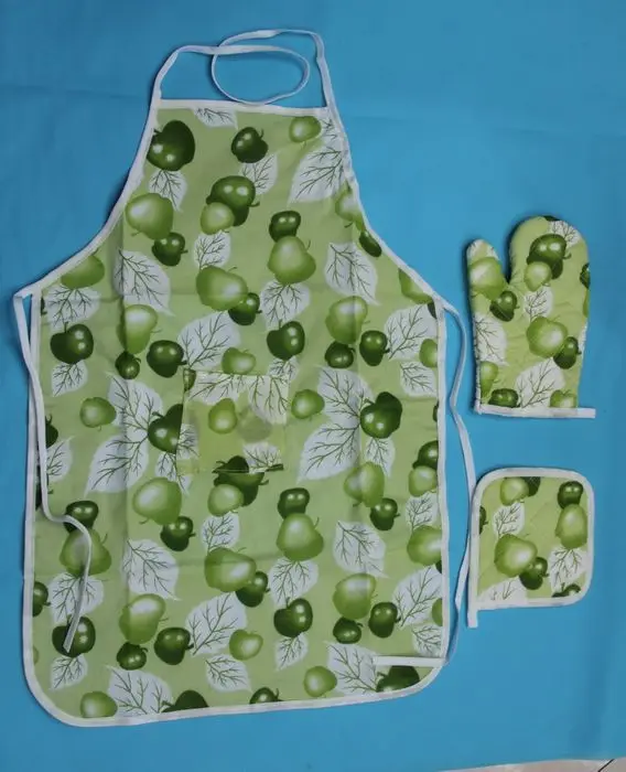 Наименование: кухонный комплект из трех предметов (фартук, подушка, перчатки)