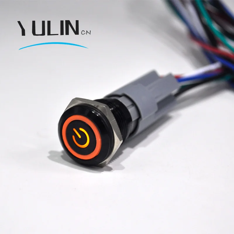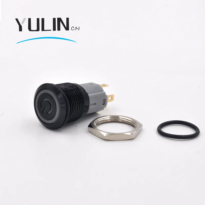 16 мм водонепроницаемый металлический кнопочный переключатель Алюминий оксид черный Мощность переключатель Выключатель без фиксации с Мощность символ