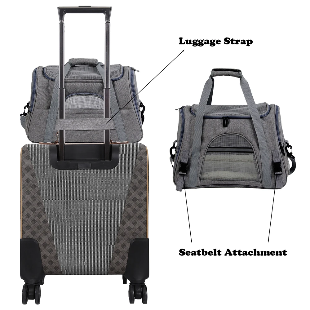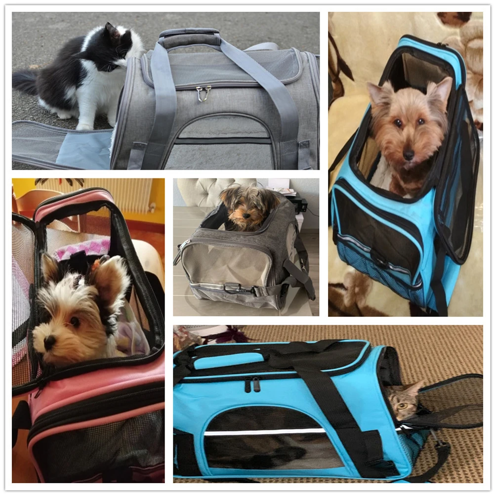Материал: армированный полиэстер Преимущество: сетка для защиты от когтей сверху и 4 стороны Продукты Вес: 1,2 кг Размер: длина 44,5 см, ширина 25 см, высота 28 см Применимый Вес: 8 кг кошек или маленьких собак Упаковка включает: одну сумку, одну флисовая подкладка, один плечевой ремень Костюм для путешествий: одобренные авиакомпанией сумки для перевозки животных
