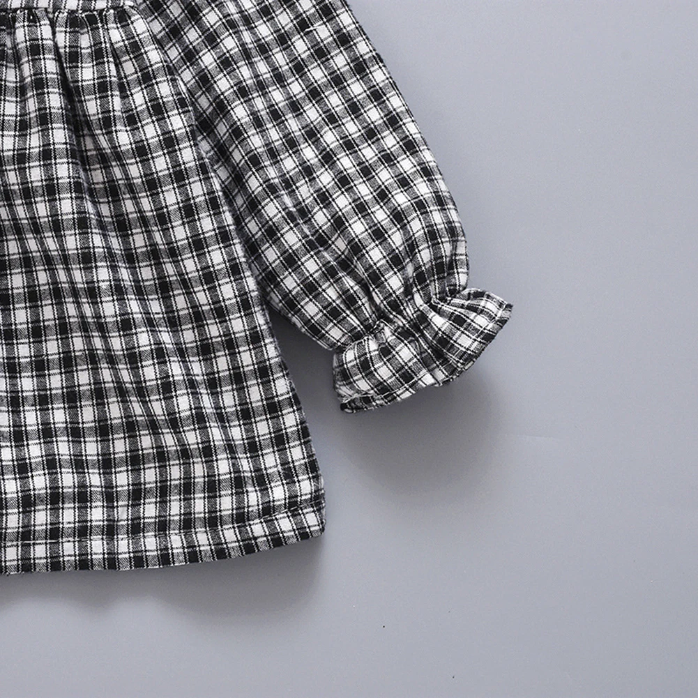 Название:Сказочная детская клетчатая блузка для маленьких девочек, коллекция 2019 года топы, зима-осень, с длинными рукавами, с воротником «Питер Пэн», теплые бархатные Детские рубашки Детский лонгслив