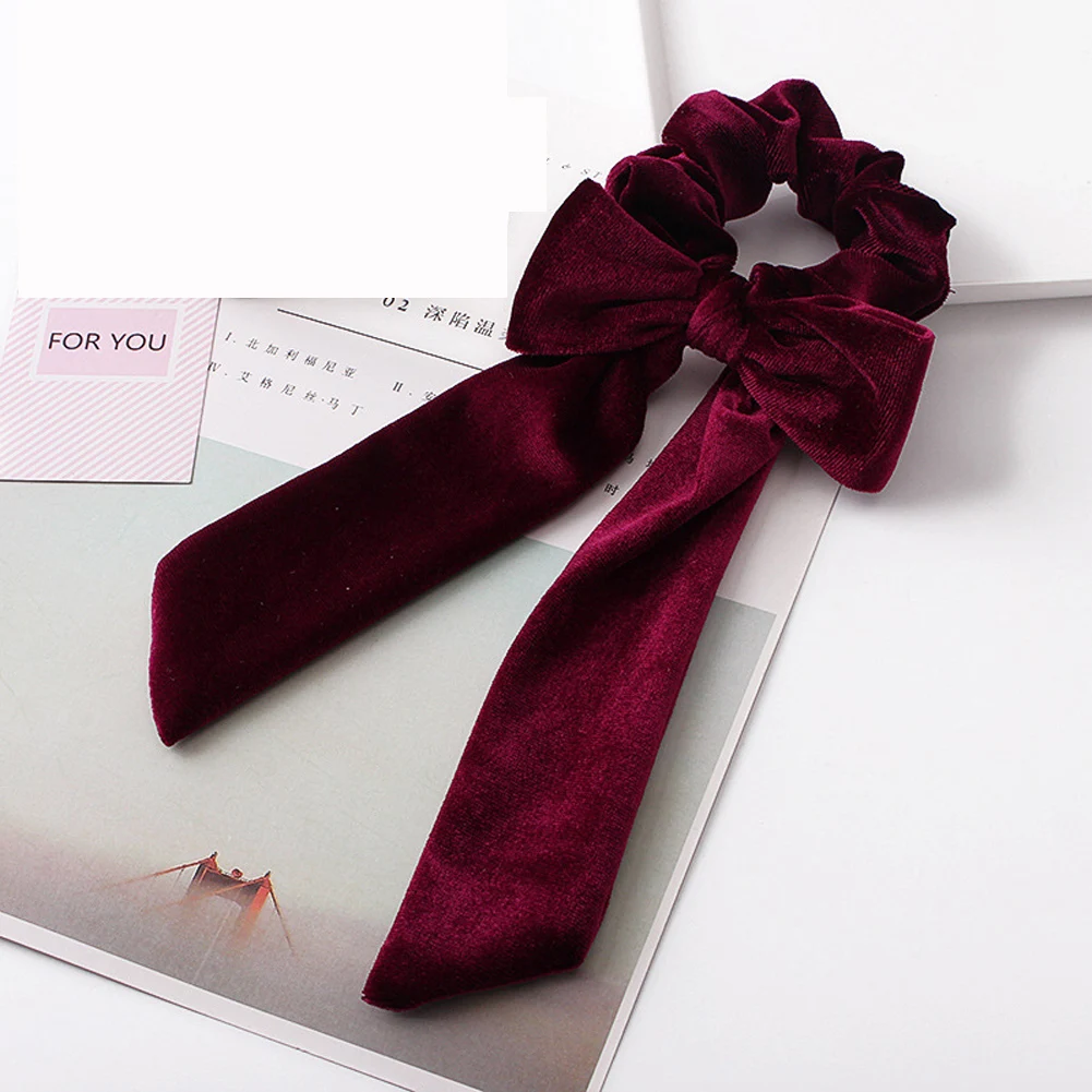 Мягкая бархатная резинка для волос для девочек с хвостиком и бантом, эластичная резинка для волос