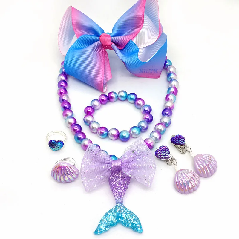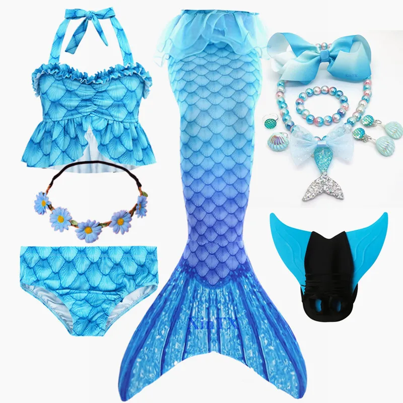 Посылка list3:1 * юбка с хвостом русалки + 1 * бюстгальтер + 1 * шорты + 1 * венок + 1 * монофин + 1 * ожерелье + 1 * браслет + 2 * кольцо + 1 пара зажимов для ушей + 1 * зажим для волос(Всего 12 предметов)