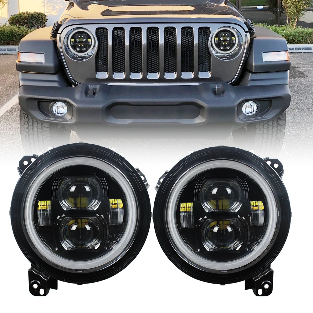 1 пара, 90 Вт, 9 дюймов, светодиодные фары DRL Hi/Low Beam, лампы с белым углом обзора, фары для Jeep Wrangler JL 2018