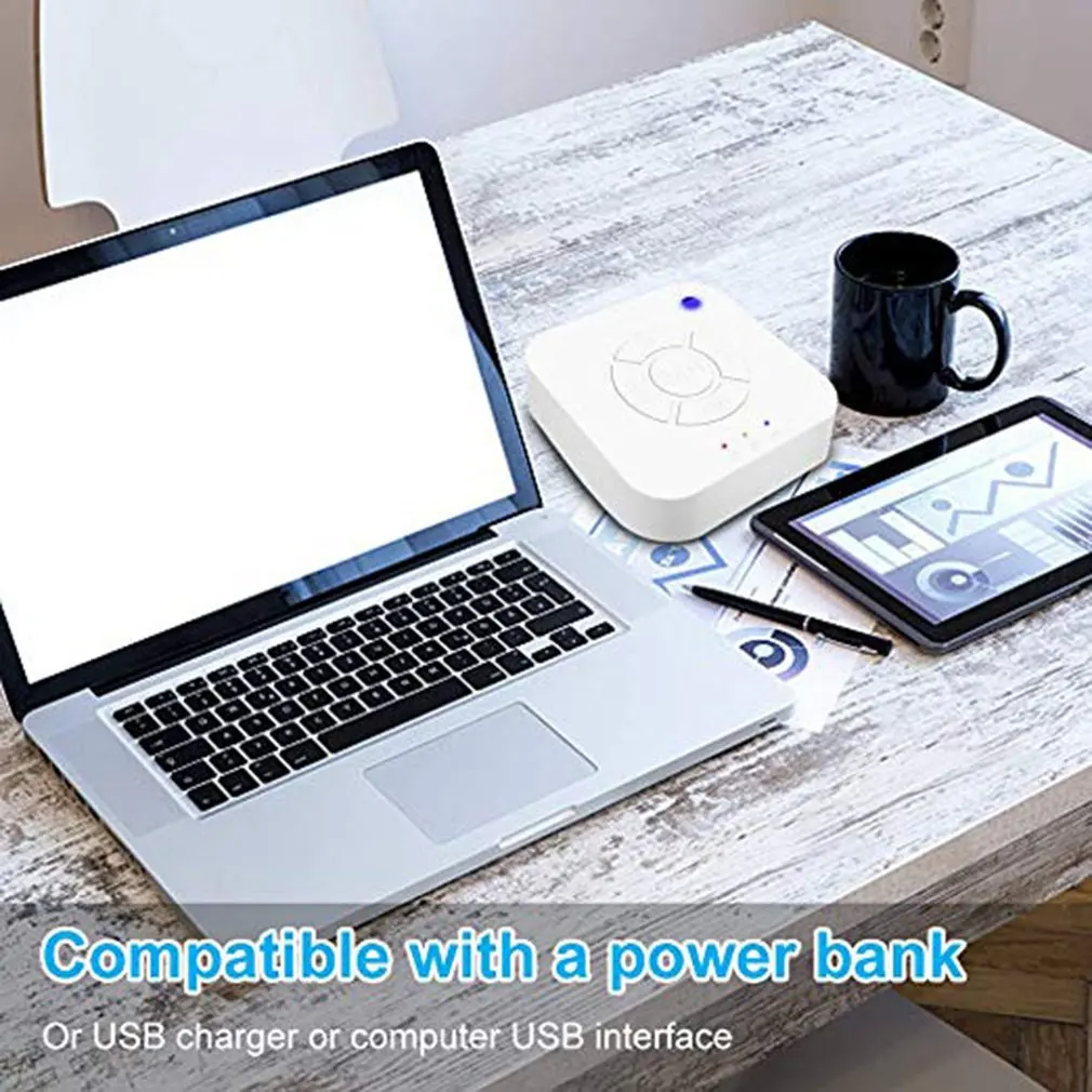 4. Компактный и портативный дизайн: портативный дизайн-маленький и легкий. Легко помещается в сумку или чемодан и является основным звуком шума для путешествий. Благодаря этому вы будете чувствовать себя комфортно во время сна. Находясь в незнакомой среде, идеал создает похожую атмосферу для лучшего сна. Устройство с белым шумом имеет встроенный аккумулятор, и когда аккумулятор истекает, вы можете зарядить его с помощью USB.