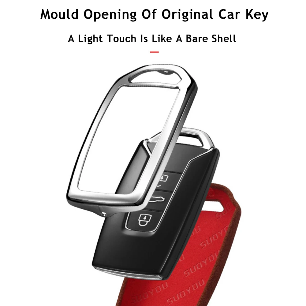 Автомобильный замшевый кожаный чехол для ключей Volkswagen Touareg 2018 2019, чехол для ключей с 3 кнопками, ключница, пульт дистанционного управления, умный спортивный протектор