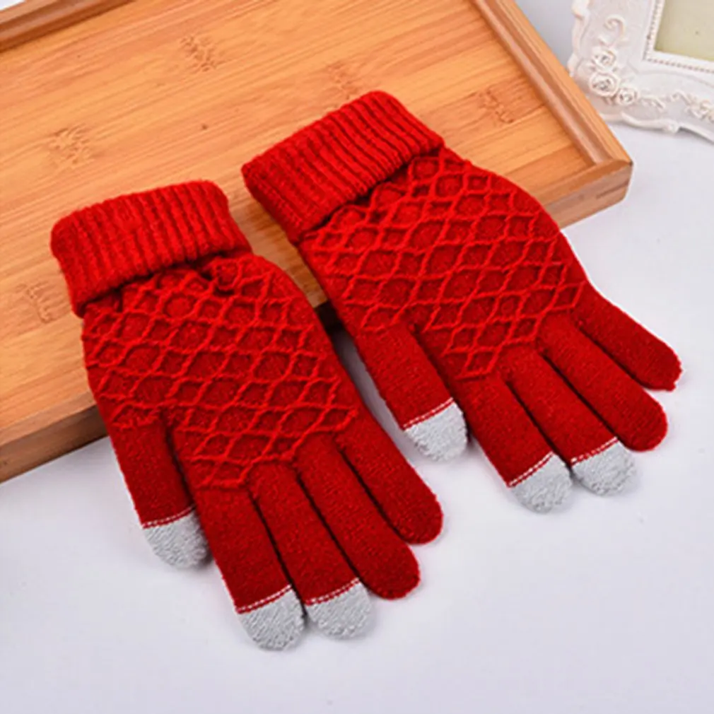 Осенне-зимние женские теплые перчатки, длина запястья, прекрасные Жаккардовые Волшебные вязаные теплые перчатки для сенсорного экрана