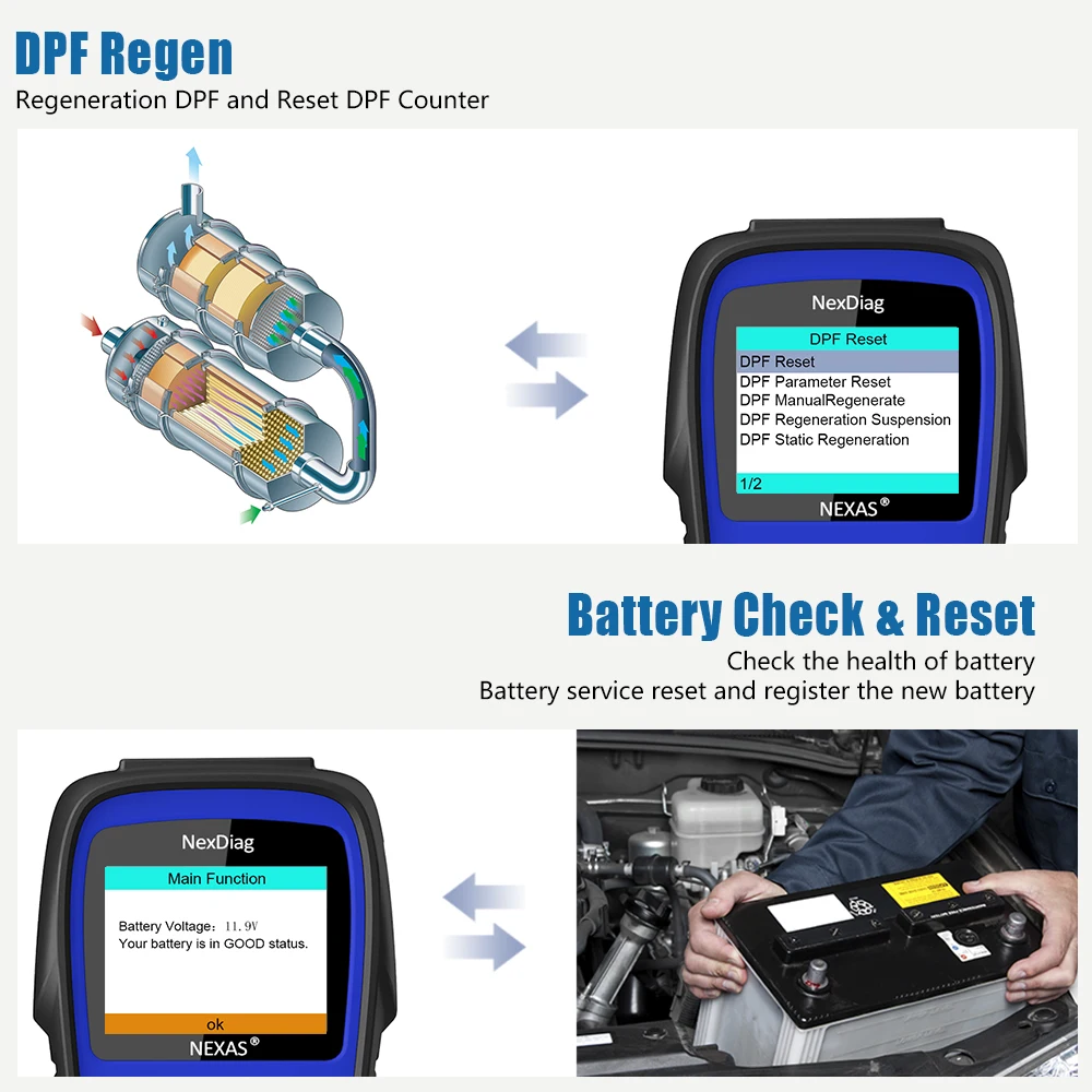 Краткая информация: Nexas ND603 OBD2 Профессиональный Автомобильный сканер OBD 2, полная система DPF, сброс масла, автомобильный считыватель кодов, автомобильный диагностический инструмент
