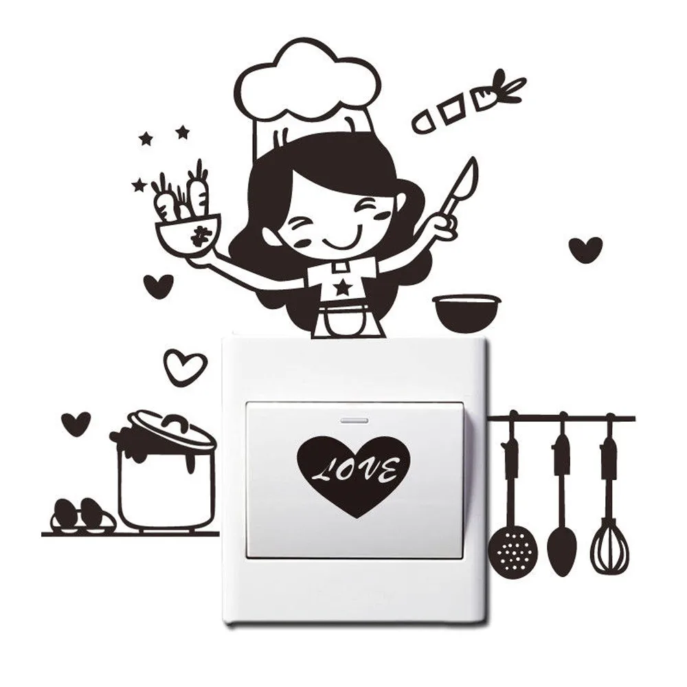 Кухонный Светильник, переключатель, наклейка, милая виниловая наклейка на стену, домашний декор