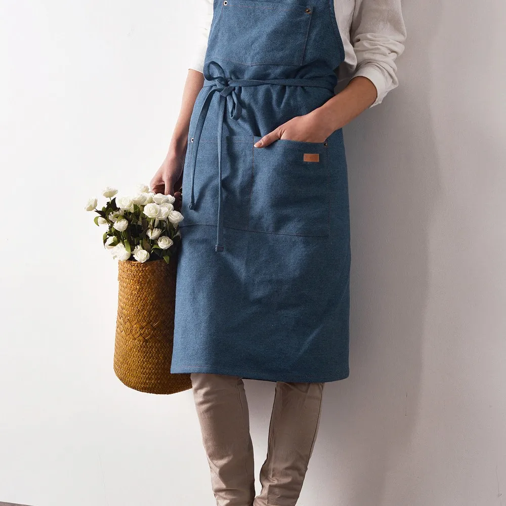 Подвесной кухонный фартук для шеи, Женский хлопковый фартук без рукавов плюс джинсовый фартук, фартук с карманом, кухонный фартук для приготовления пищи, цветочный фартук