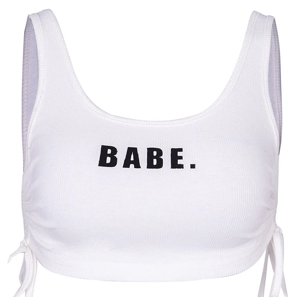 Летняя женская повседневная майка с буквенным принтом без рукавов для занятий йогой, Спортивная укороченная футболка