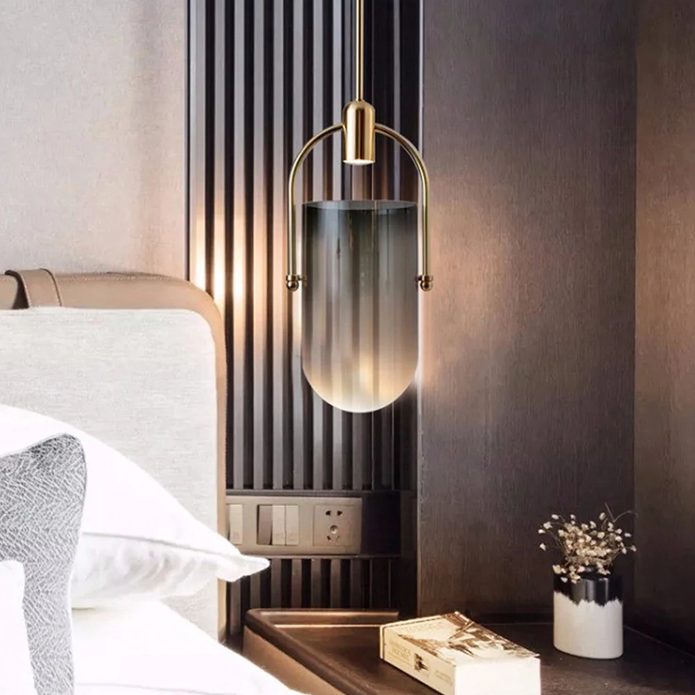 Lamp shade and body is made of premium glass; Function and style in one, this design of this creative glass pendant light can be naturally fit your room / furniture; Use this stunning light on your sophisticated workstation is perfect. Eye Caring Design to be soft, stable and non-flickering, the lighting is friendly on your eyes so you can enjoy what you're doing for longer. Application Suitable for home interior, industrial sites, restaurants, bedroom, living room, study room, office, bar, cafe, shop, balcony, kitchen, party, bathroom, apartment, hallway, dining room. Specifications Category: Pendant Light Body Material: Metal & Glass Size (Dia. x H): 22 x 42 cm / 8.7 Inch x 16.5 Inch Bulb Type: LED / CFL / Incandescent Bulb Base: G9 Voltage: 90-240V Bulb Included Or Not: Bulb is Included Warm Tips: If you have children or pets, which can accidentally bump into the lamp, it is advised to place the lamp out of their reach.