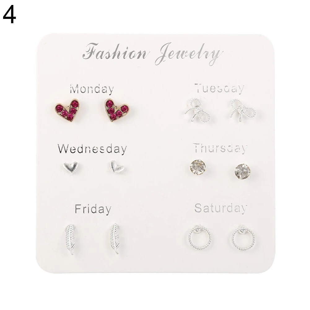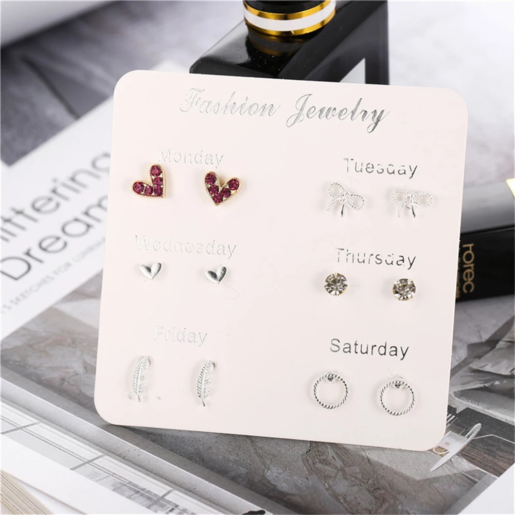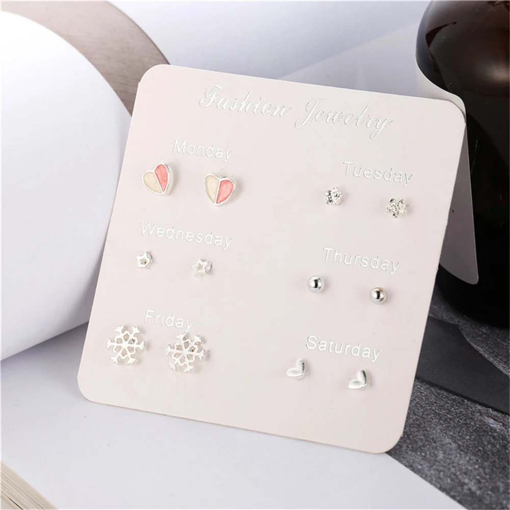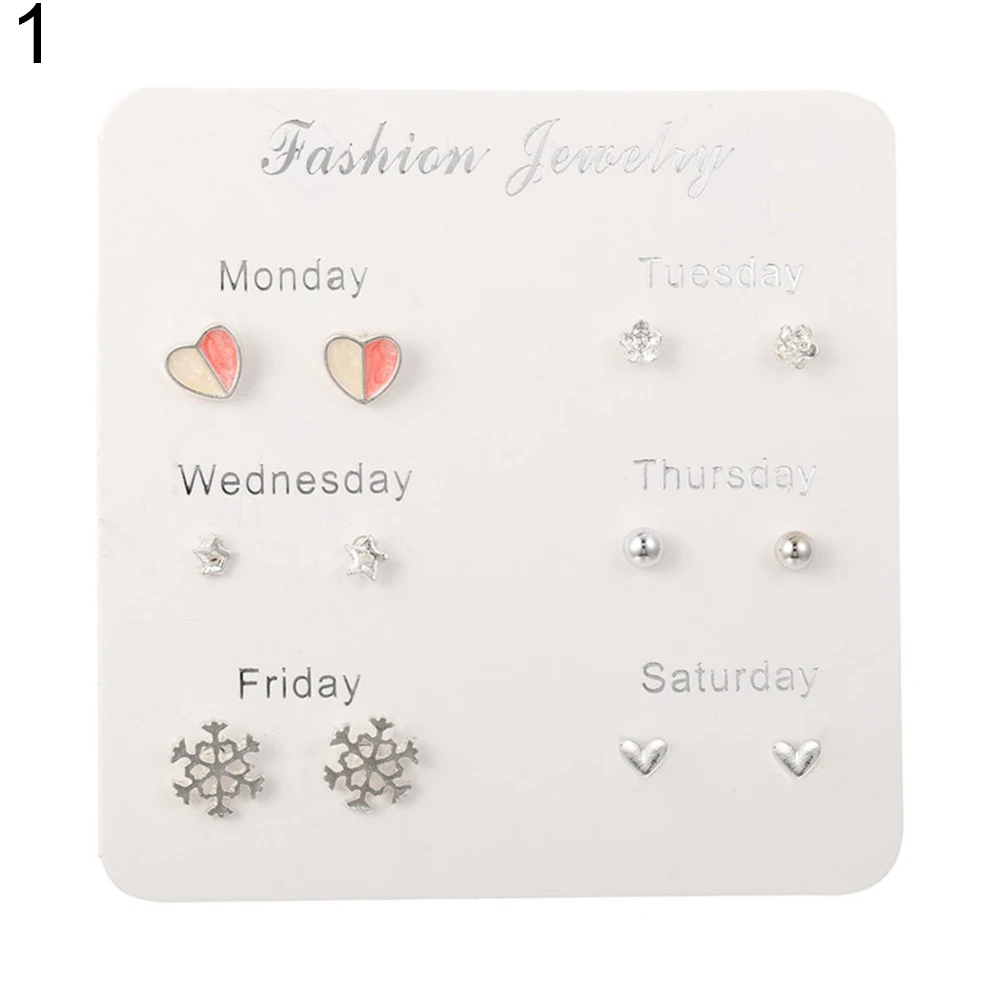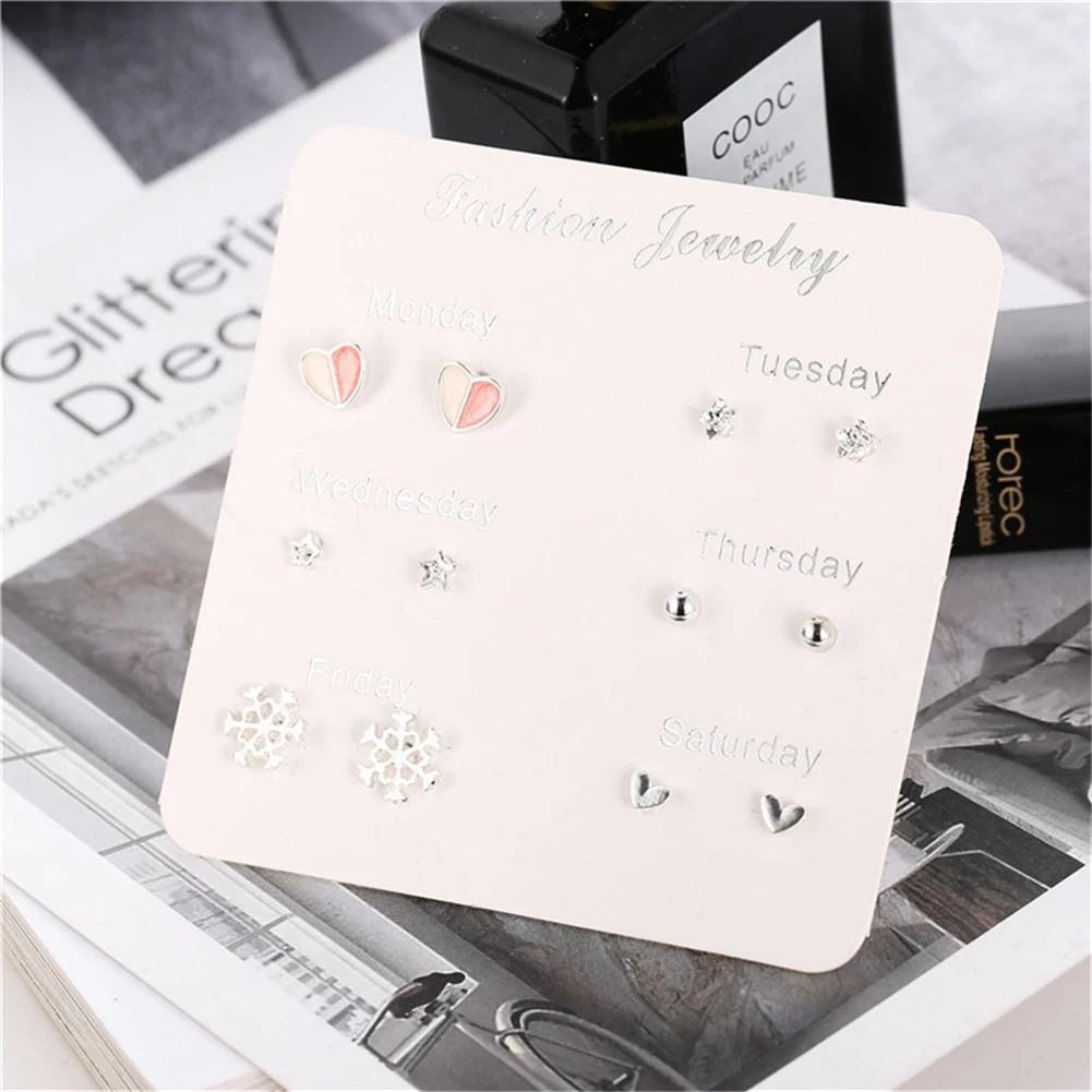 6 пар женские серьги Снежинка Сердце Звезда лист Искусственный драгоценный камень серьги гвоздики ювелирные изделия подарок женские аксессуары