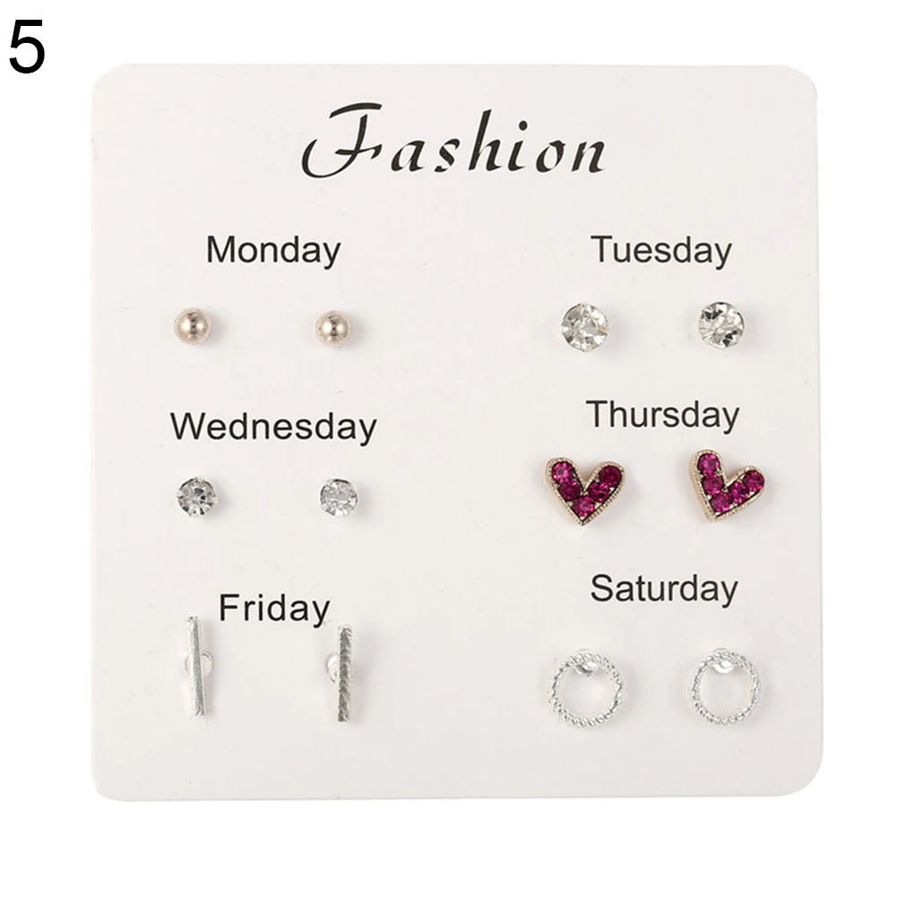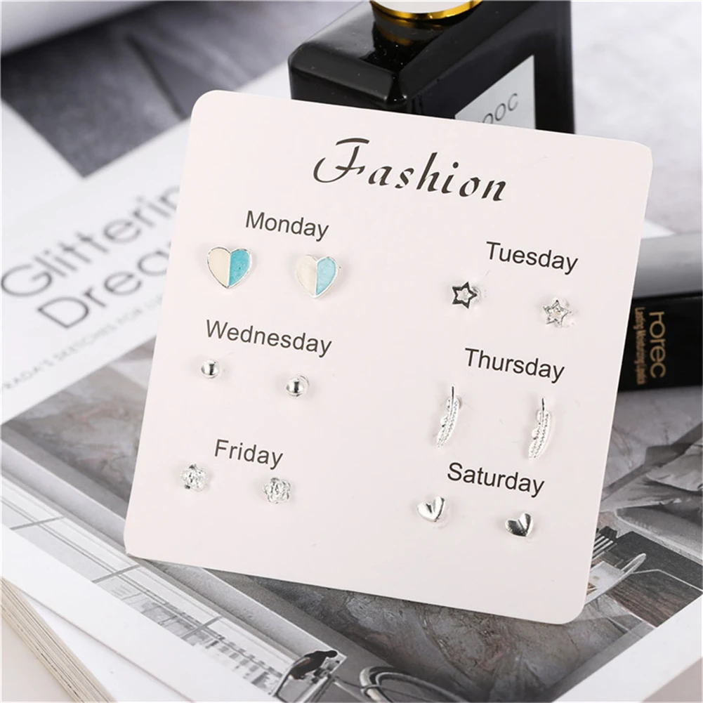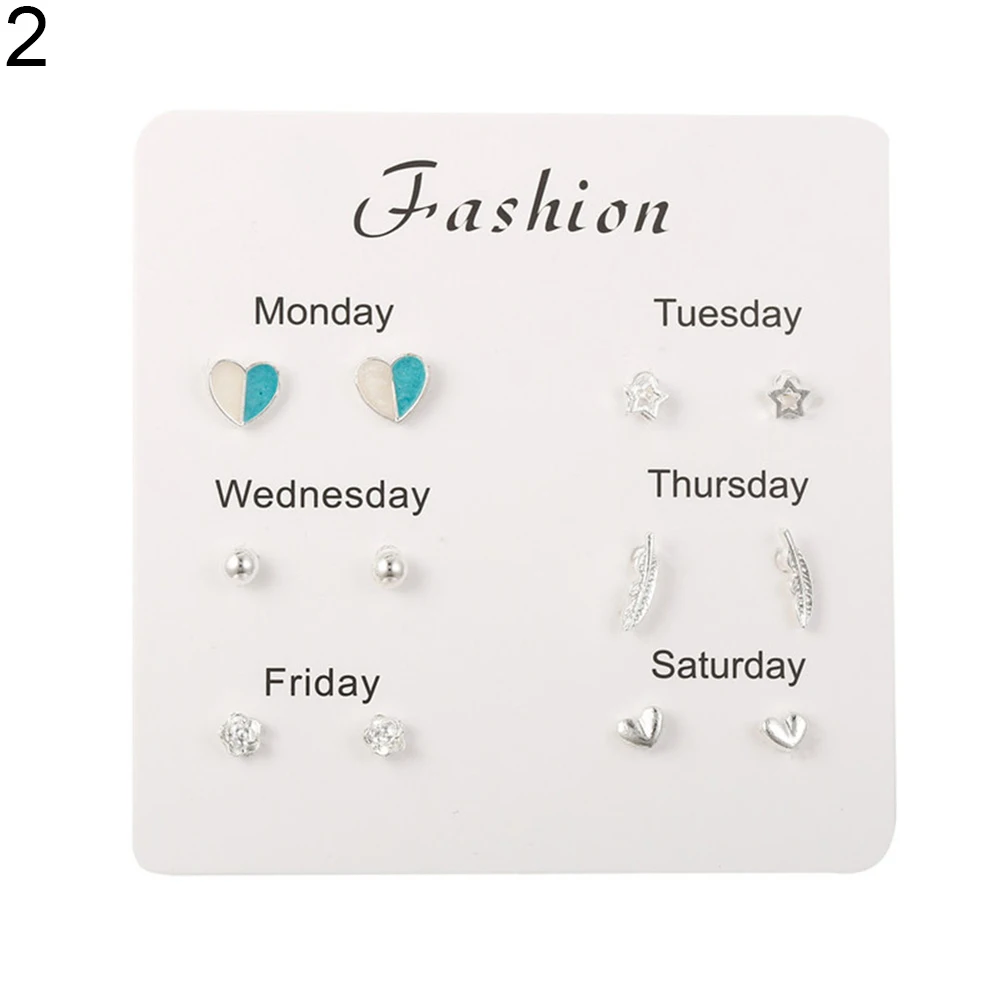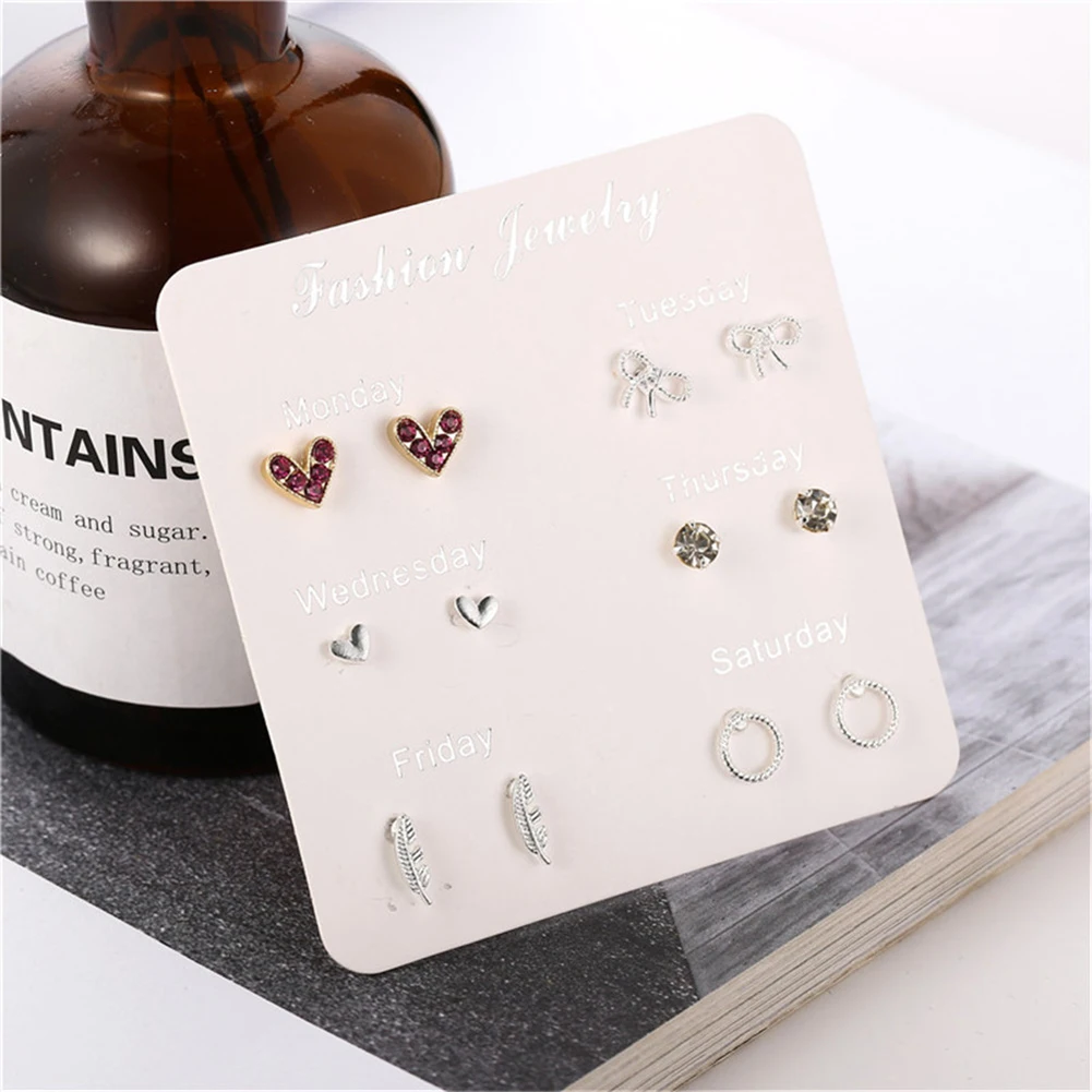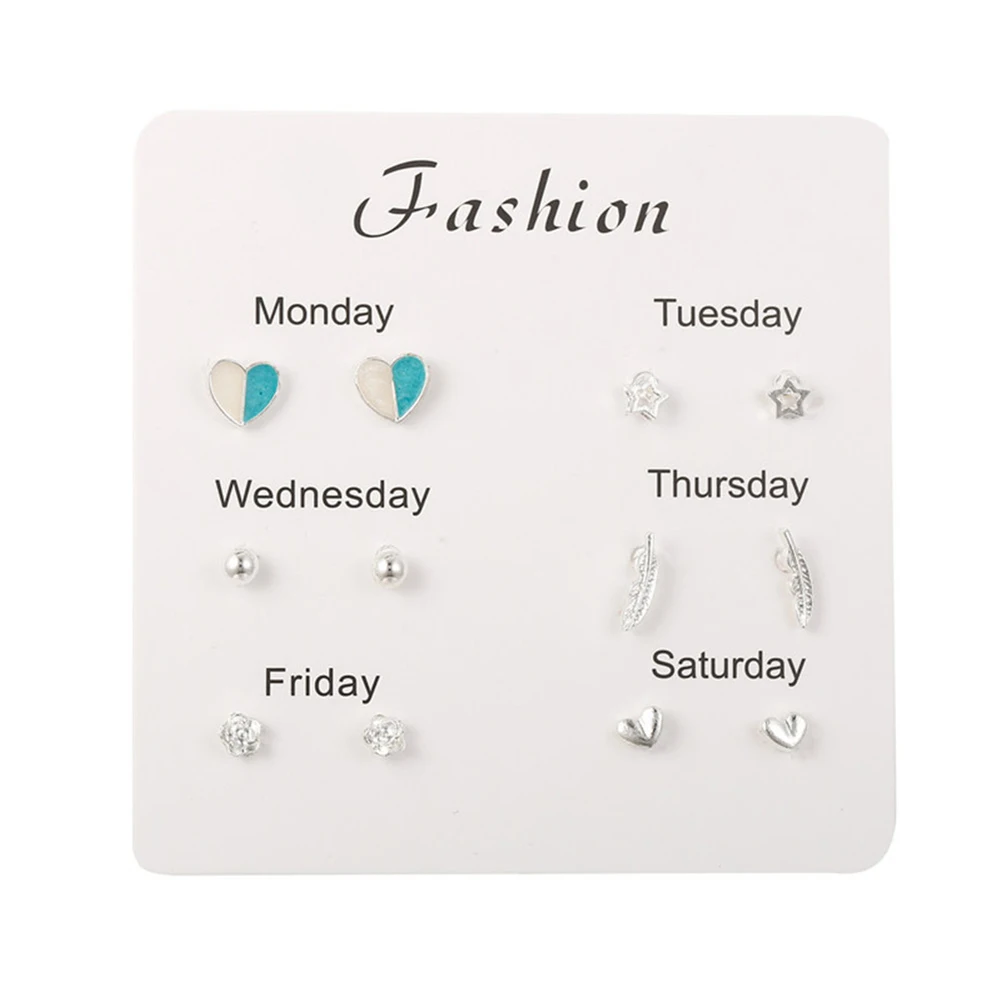 6 пар женские серьги Снежинка Сердце Звезда лист Искусственный драгоценный камень серьги гвоздики ювелирные изделия подарок женские аксессуары