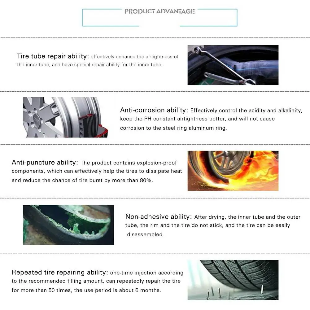1. Способность к ремонту шин: эффективно повышает герметичность внутренней трубки и имеет специальные возможности для ремонта внутренней трубки.Способы оплаты:
