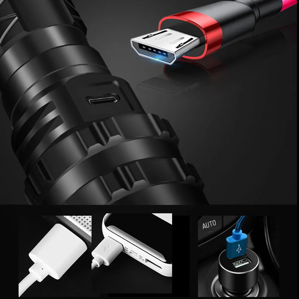 1. Светодиодный Тип: XHP50.2 2. Лампочка/светодиодный чип на плате) Срок службы: 100000 часов 3. 5 режимов: высокий, средний, низкий, стробоскоп, сигнал SOS 4. Тип батареи: 1x26650 аккумулятор/1x18650 аккумулятор 5. Тип переключателя: Нажмите кнопку 6. Цвет корпуса: черный, красный 7. Материал: алюминиевый сплав 8. Фонарь Вес нетто: 310 г 9. Перезаряжаемый: Прямая зарядка через USB
