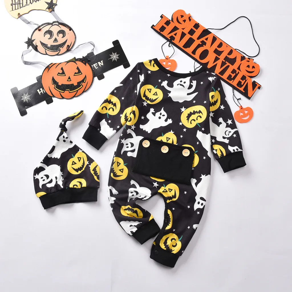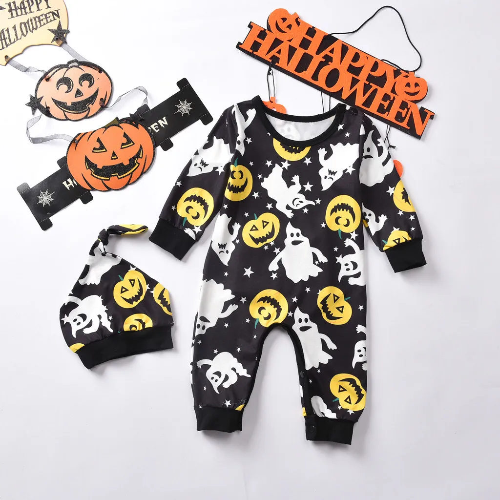 Newborn Infant Baby Boy Girl Halloween Pumpkin Ghost Romper Jumpsuit Cap Costume