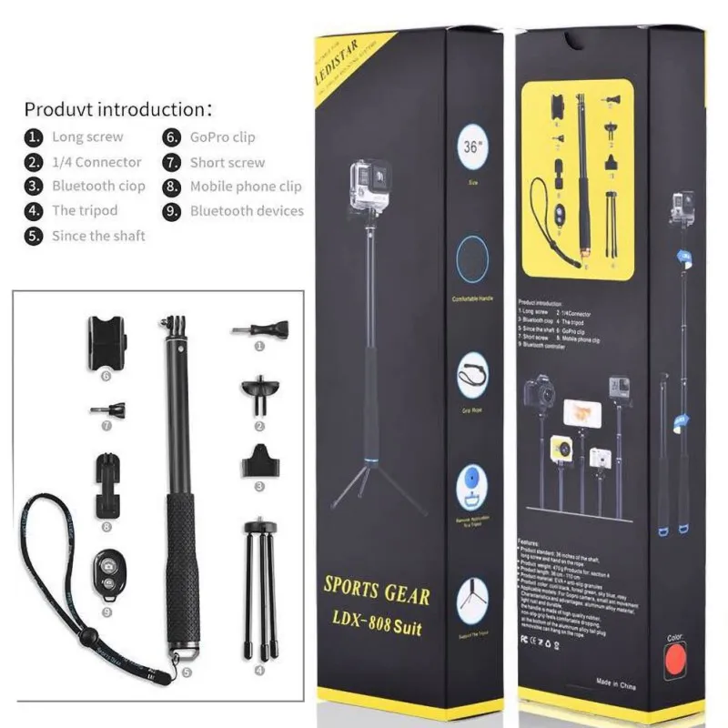 Особенность: 1. Рукоятка селфи-палки покрыта неровным узором, что обеспечивает прочную и удобную фиксацию для вас 2. когда не используется, вы можете легко сложить его, чтобы занять меньше места 3. изготовлен из алюминиевого сплава, палка для селфи легкая, Прочный и портативный набор селфи-палок подходит для Yi, телефонов, экшн-камер и SLR камер B, G, L, R/одиночных стержней: 5.It поставляется только с селфи-палкой. Пожалуйста, обратите внимание перед заказом b-1, G-1, L-1, R-1/комплект: 5.чехол пульта дистанционного управления для Gopro используется для 3 плюс/4 пультов 6. Прямой зажим легче носить с собой, проще собрать, И stabler для поддержки телефона 7.адаптер можно добавить на зеркальную камеру и цифровую камеру, чтобы сделать его работать как настольный держатель 8. пульт дистанционного управления для телефона подходит для IOS и для Android, и поставляемый зажим можно закрепить на стержне, Так что вы можете свободно позировать, когда у вас свободные руки 9. кроме селфи-палки, он имеет штатив, винты, держатель телефона, 1/4 разъем и так далее Спецификация: Материал: алюминиевый сплав цвет: черный, зеленый, синий, красный Длина: комплект: 36-110 см, один стержень: 30-92 см Вес нетто: набор: 382 г, один стержень: 183 г Номер модели: набор: LDX-808, один стержень: LDX-801 Размер в упаковке: комплект: 98x46x363 мм, один стержень: 60x450x315 мм Вес в упаковке: набор: 460 г, один стержень: 401 г Примечание: Из-за разницы в экране, Возможна небольшая разница в цвете из-быть немного отличается от того, что вы ожидаете, замеры сделаны вручную, поэтому возможны его упакованы включают в себя: B красные/зеленые/голубые/желтые/L, R: 1 кисть для маскирующих средств selfie stick B-1, G-1, L-1, R-1: 1 х Набор палок для селфи