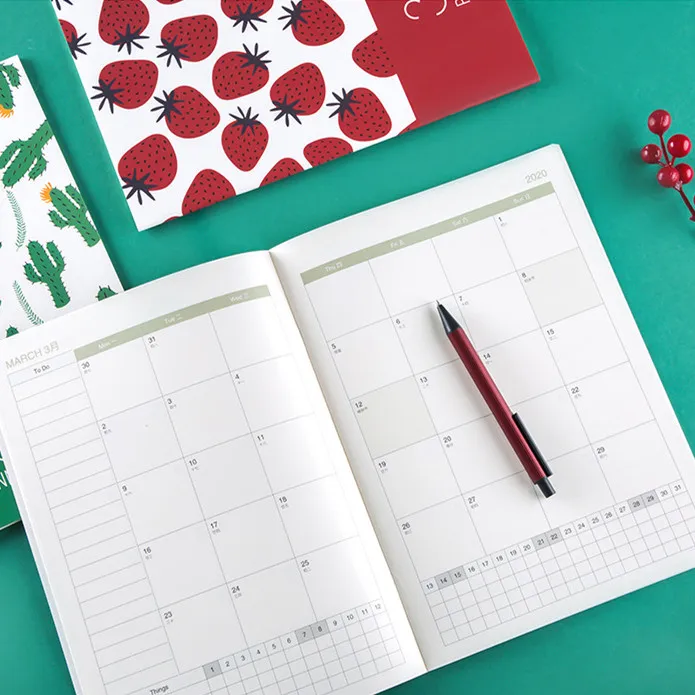 Отзывы о А4 Agenda кактус клубника 2020 ежемесячно для планирования расписания ручной бумажный
