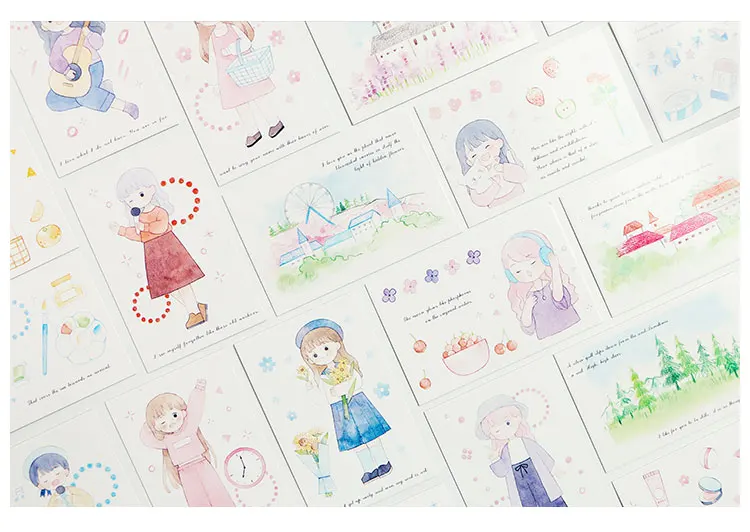 Материал: бумага Вес: 43 г/кор. Размер: около 5,2x8 см Стиль: 28 шт. разный дизайн Упаковка: карта X 1 коробка