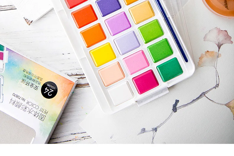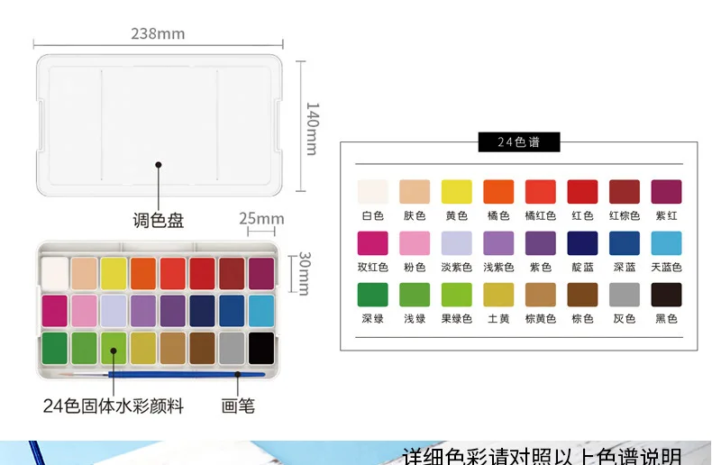 Набор однотонных акварельных красок для студентов с кистью для рисования и палитрой, портативный набор раскрашенных вручную красок, школьные товары для искусства