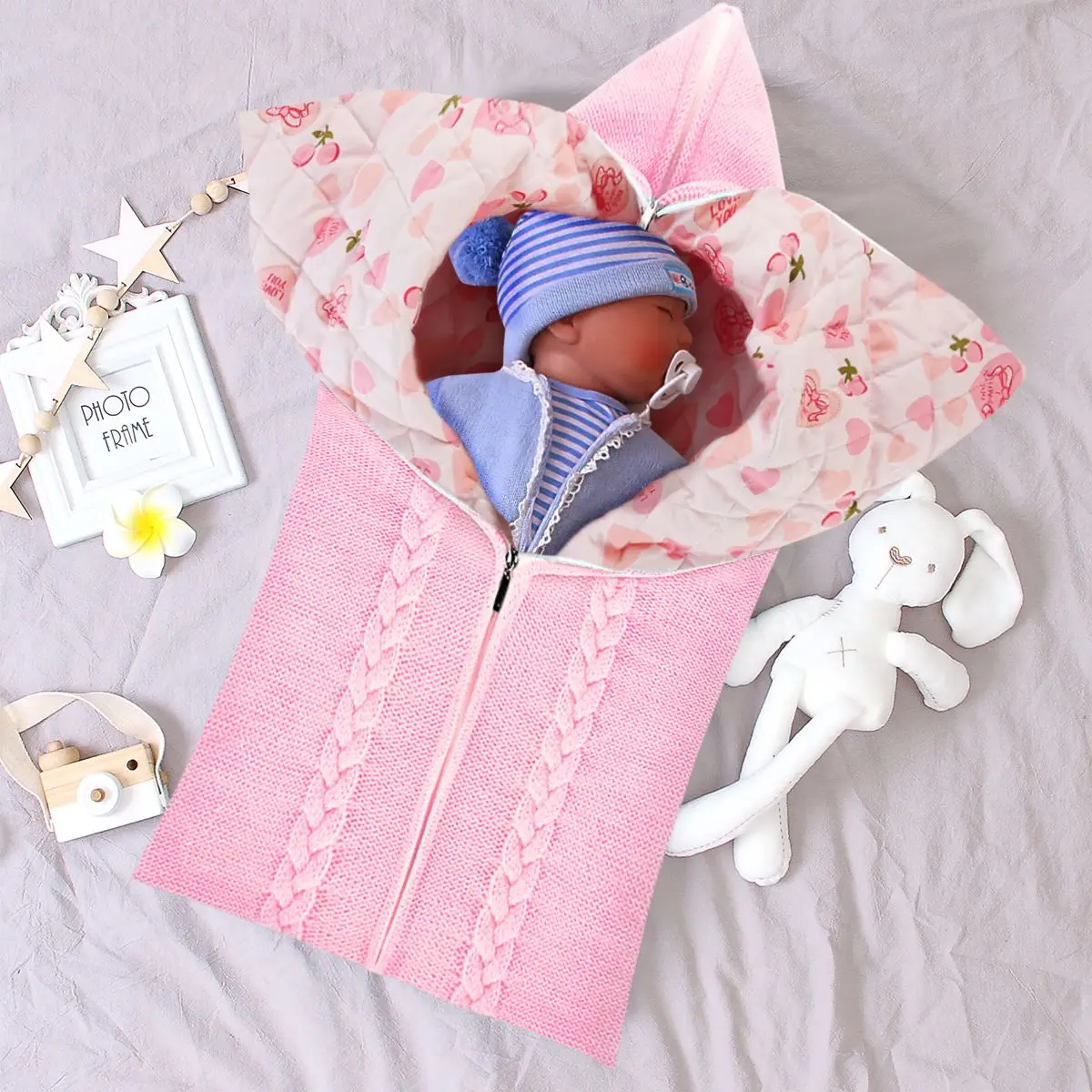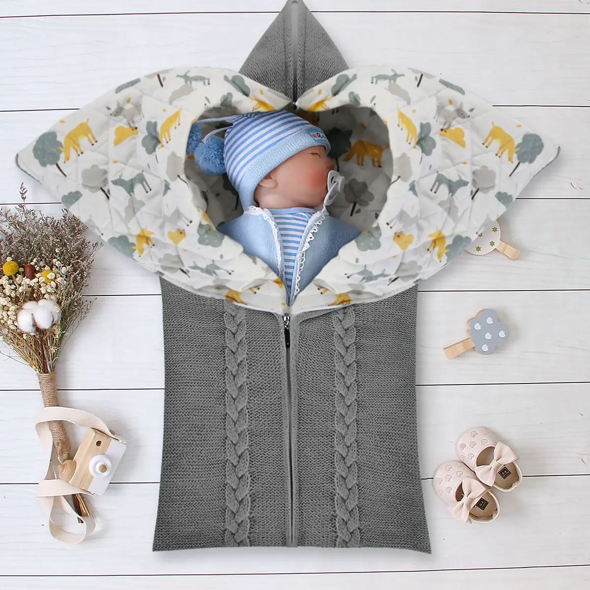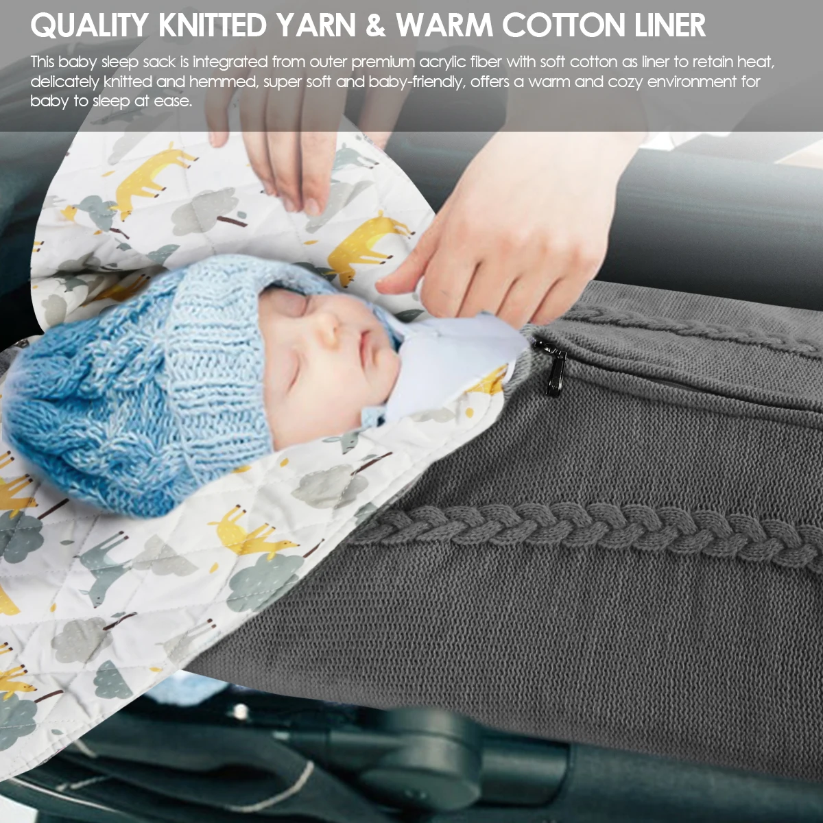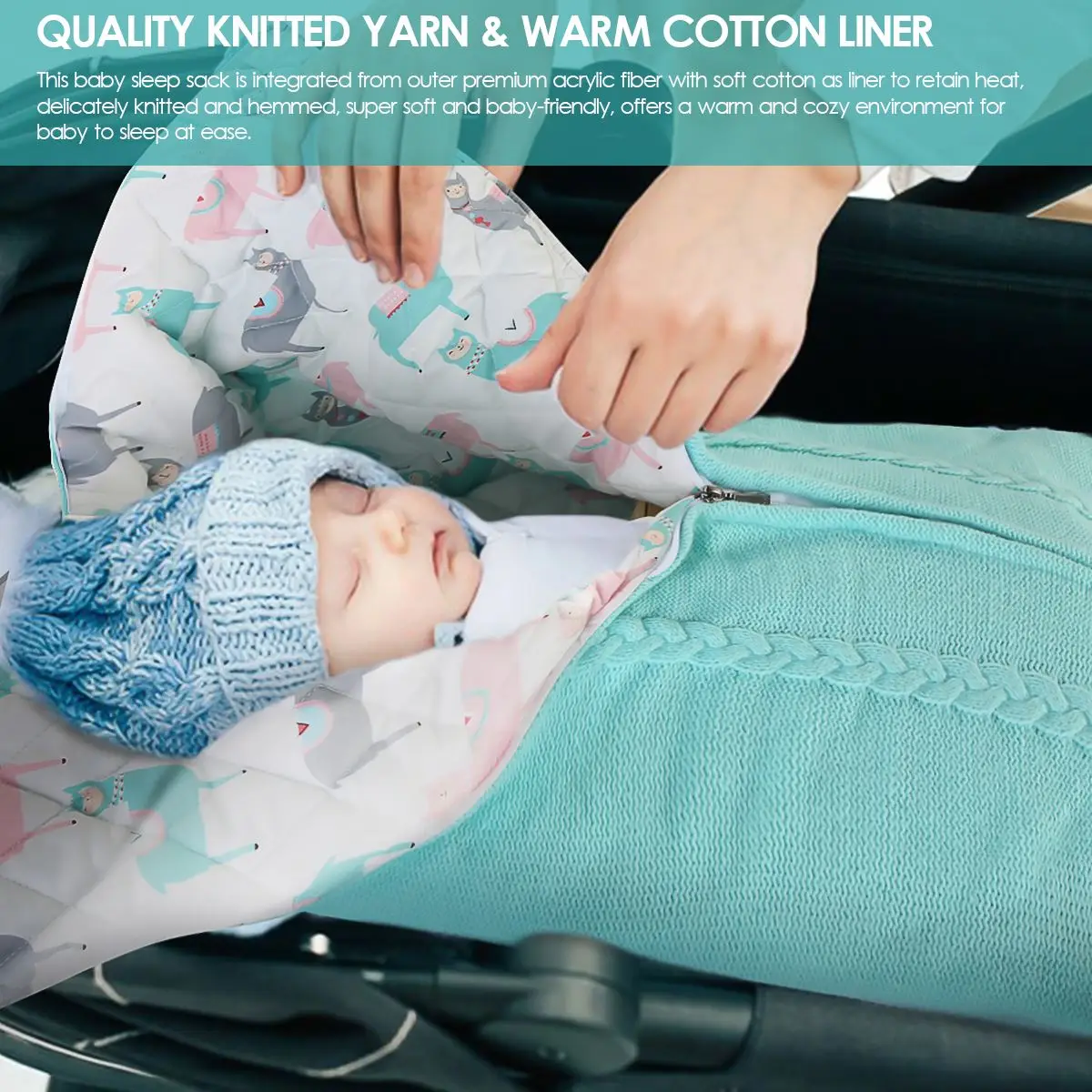 [QUALITY KNITTED YARN & WARM COTTON LINER]: This baby sleep bag is integrated from outer premium acrylic fiber with soft cotton as liner to retain heat, delicately knitted and hemmed, super soft and baby-friendly, offers a warm and cozy environment for baby to sleep at ease.1 x Baby Sleep bag