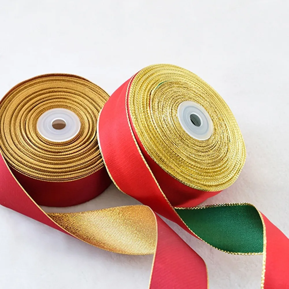 2 м, Рождественская Проводная атласная лента, красная/зеленая, двухцветная, атласная лента для рождественской елки, домашние Вечерние