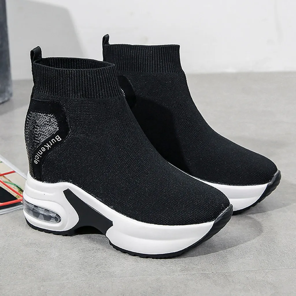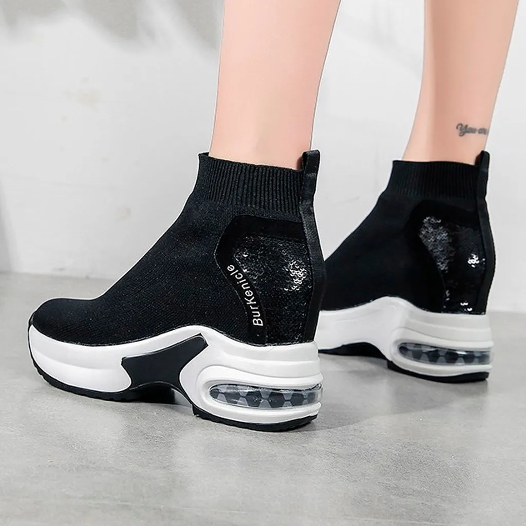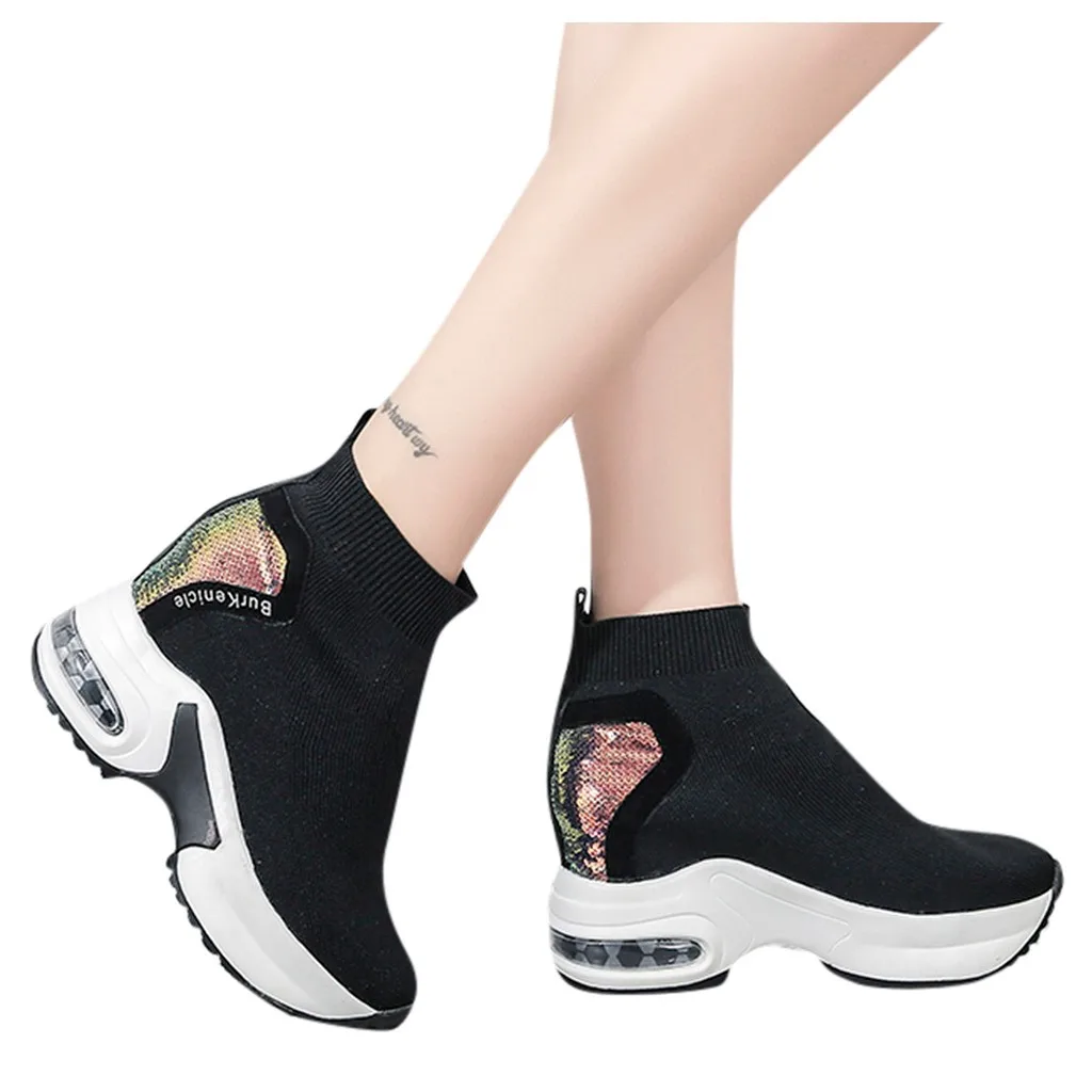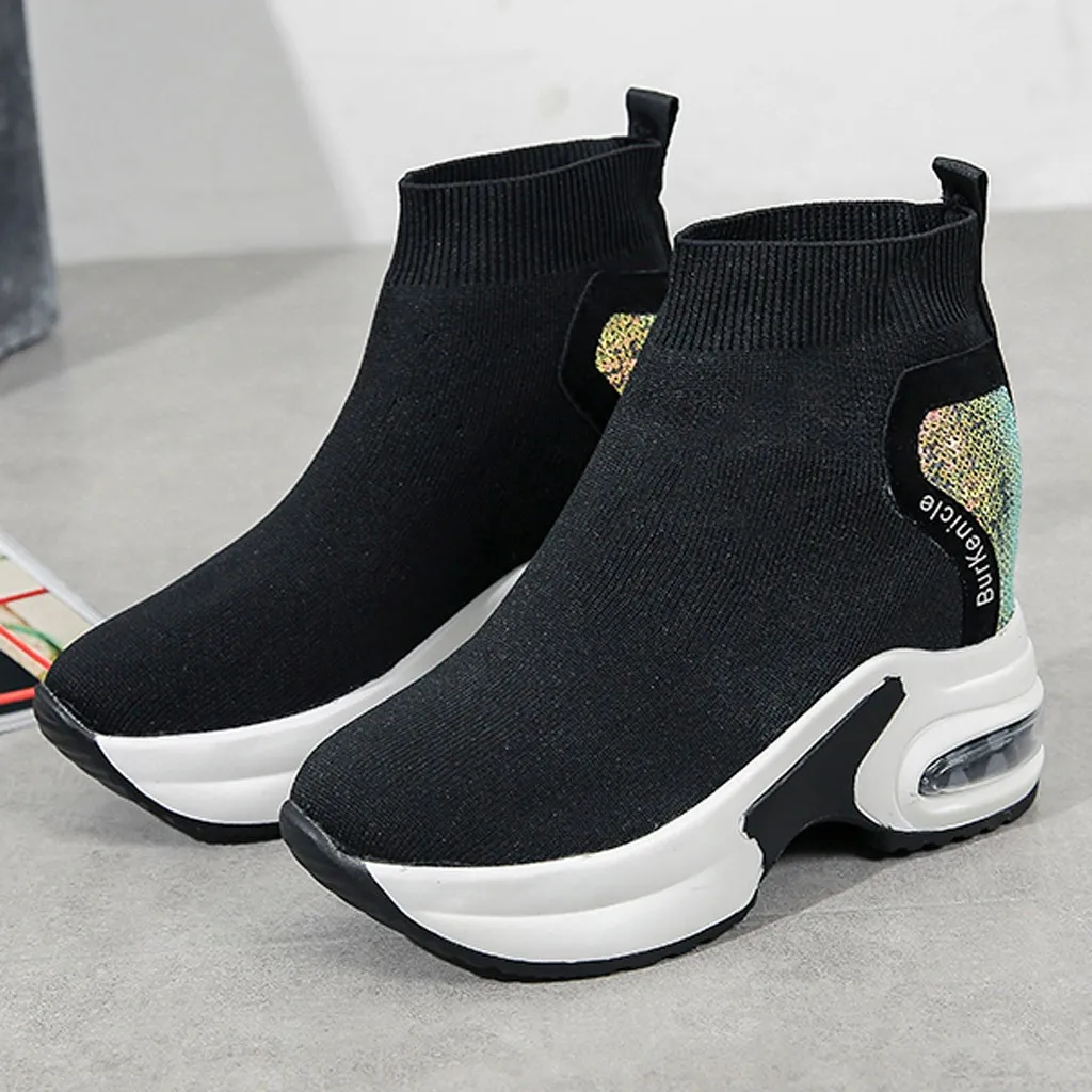 Женские высокие кроссовки; Верхний дышащий носок Обувь на толстой подошве; обувь на платформе