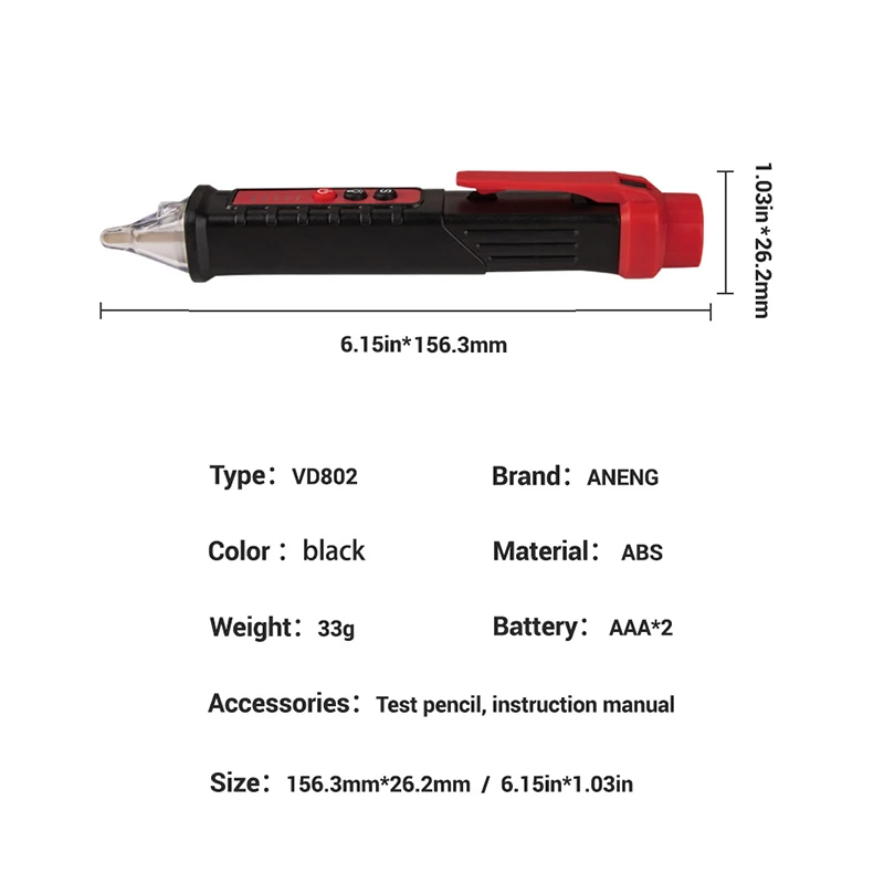 Посылка: 1 * детектор напряжения переменного тока; 1 * Руководство пользователя