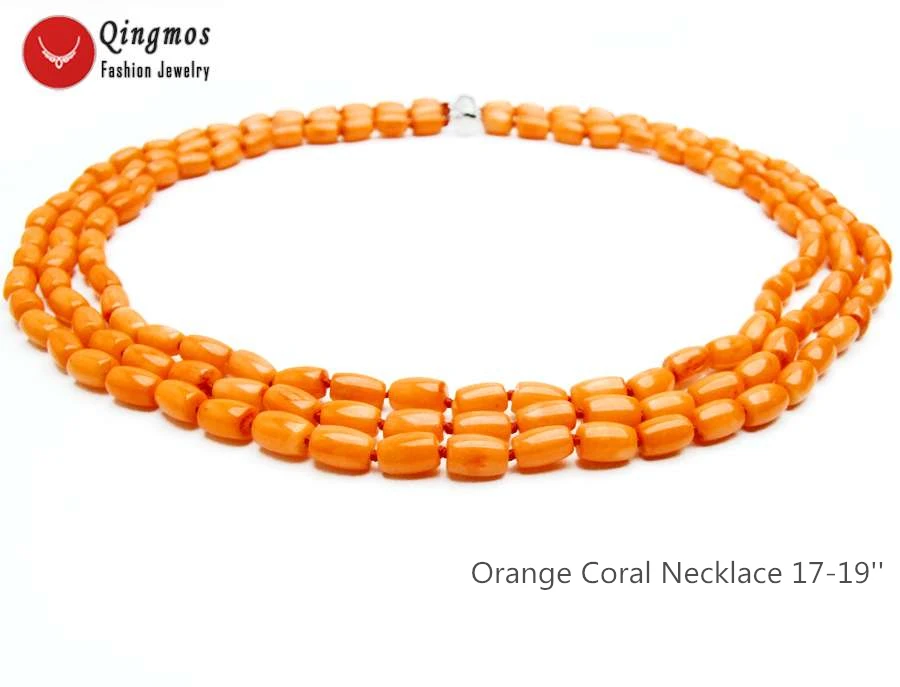 6*9 мм толстый кусочек оранжевого цвета высокое качество натуральный коралл ожерелье для женщин 17-19 "Чокеры 3 нити ожерелье nec5774
