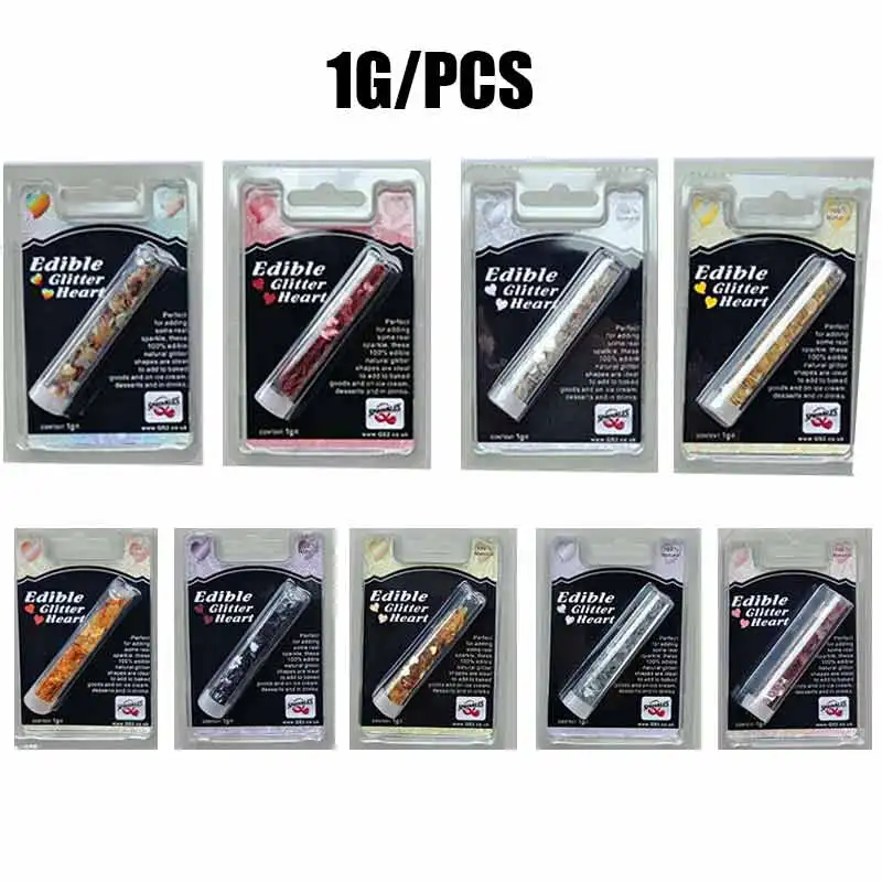 Вес: 1g Цвет: красный, синий, белый, фиолетовый, золотой, серебряный, зеленый, Радужный, розовый, оранжевый, желтый Форма: в форме сердца Характеристики: идеально подходит для кексов, мини-пирожных, кексов большого и королевского размера, пирожных и печенья Удобный и беспорядок бесплатно