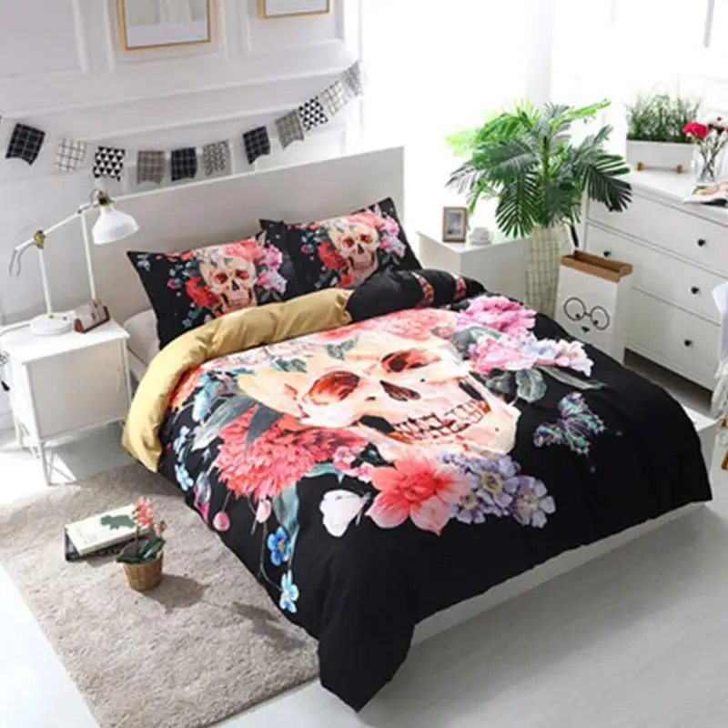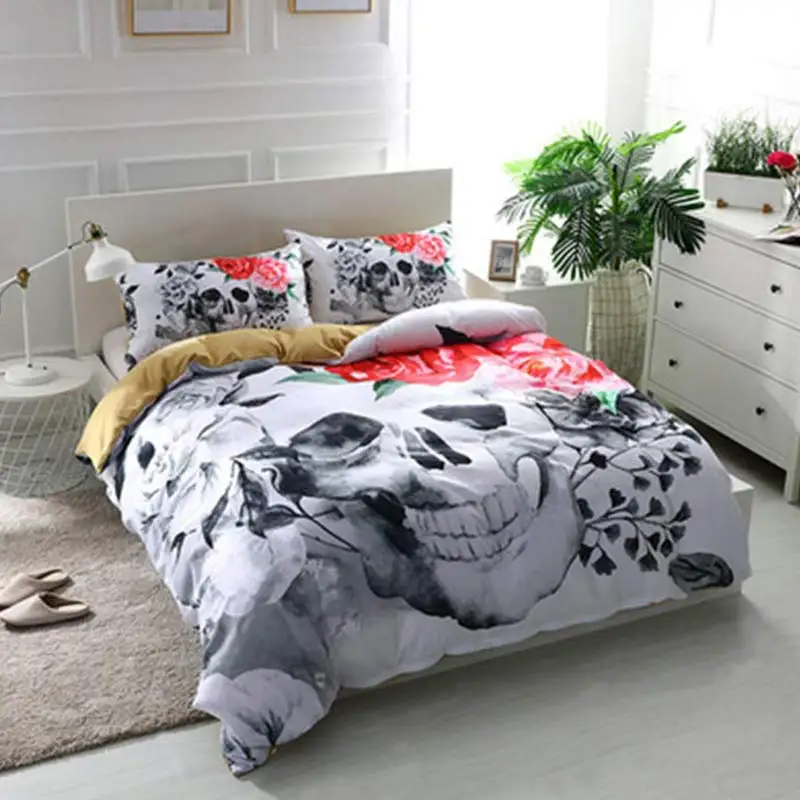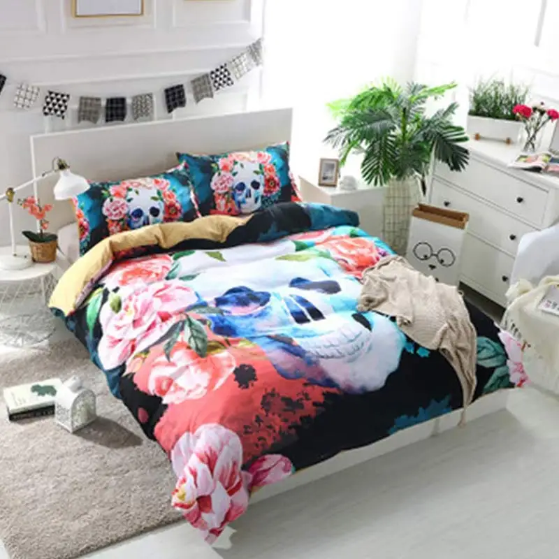 Комплект постельного белья с 3D акварельным черепом 140x21 0 см/180x21 0c/172x21 8 см/135x20 0 см/200x229 см, пододеяльник, одеяло, набор постельного белья s