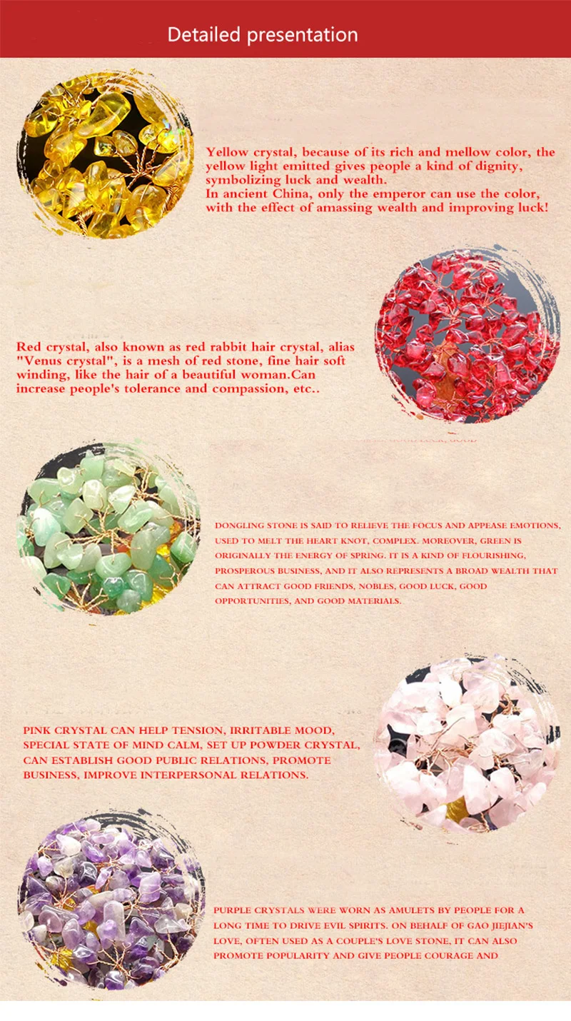 Материал: смола, Кристальный камень, медная проволока Общая высота: 18 см 5 цветов на выбор: красный, розовый, желтый, зеленый, смешанные цвета Это хороший домашний декор Подарите себе и своим друзьям отличный подарок. Посылка включает в себя: 1 шт. x Хрустальное денежное дерево