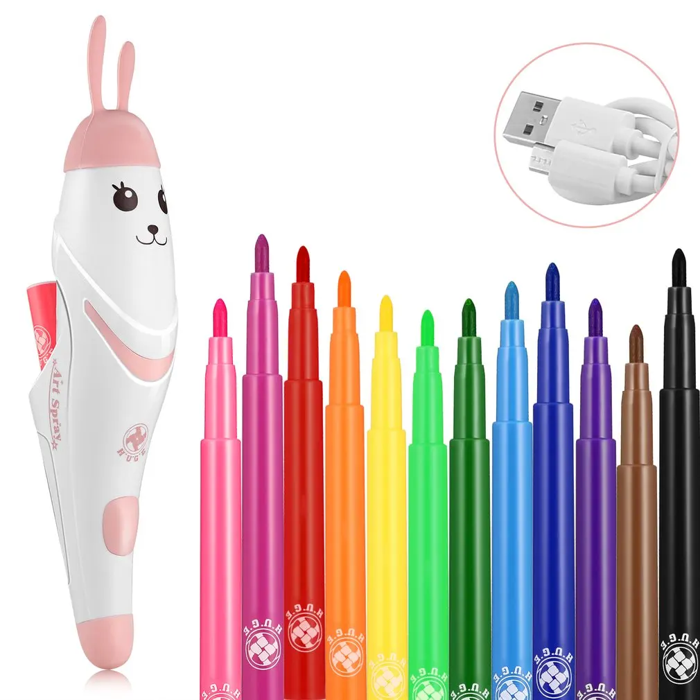 This Spray Art Set offers an exciting way to use markers by spraying them. The airbrush pen is electric-powered and easy to use. Just push the marker into the Airbrush Pen and press the spray button lightly to Spray. The Airbrush pen is battery operated. Rechargeable Li-Po battery inside, no need to exchange the battery. Just charge by USB cable. Create a darker, defined line by moving the nozzle closer to the paper or spray a looser line by pulling the nozzle back.