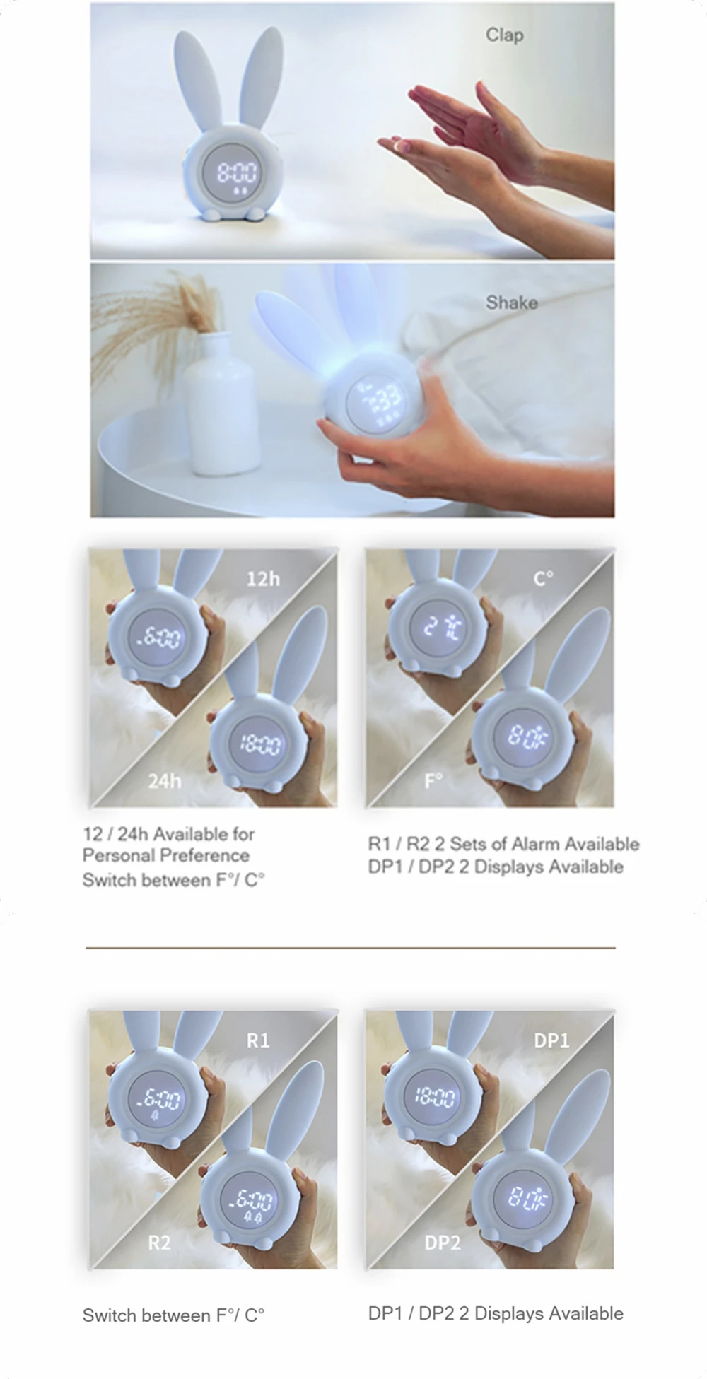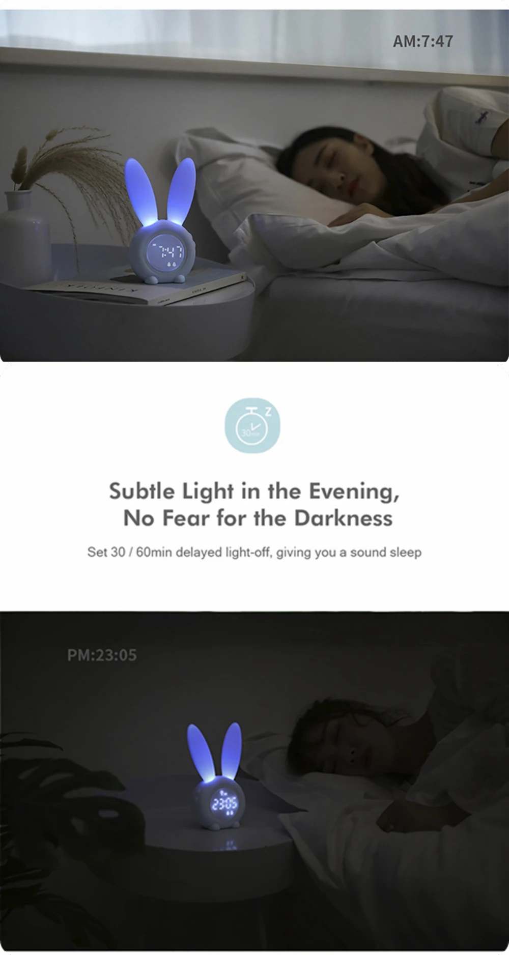Светодиодный Будильник с заячьими ушками, цифровой будильник, светодиодный дисплей, управление звуком, милый кролик, ночная лампа, современные таймеры, настольные часы для украшения дома