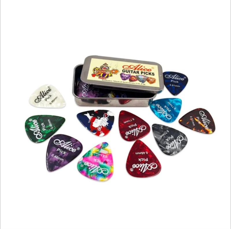 Размер: 12 * медиаторы (Разные цвета )1 * металлическая коробка