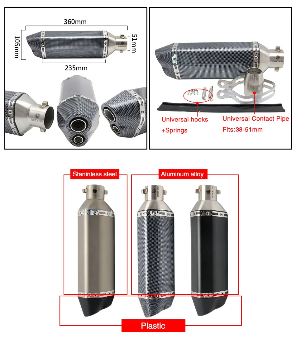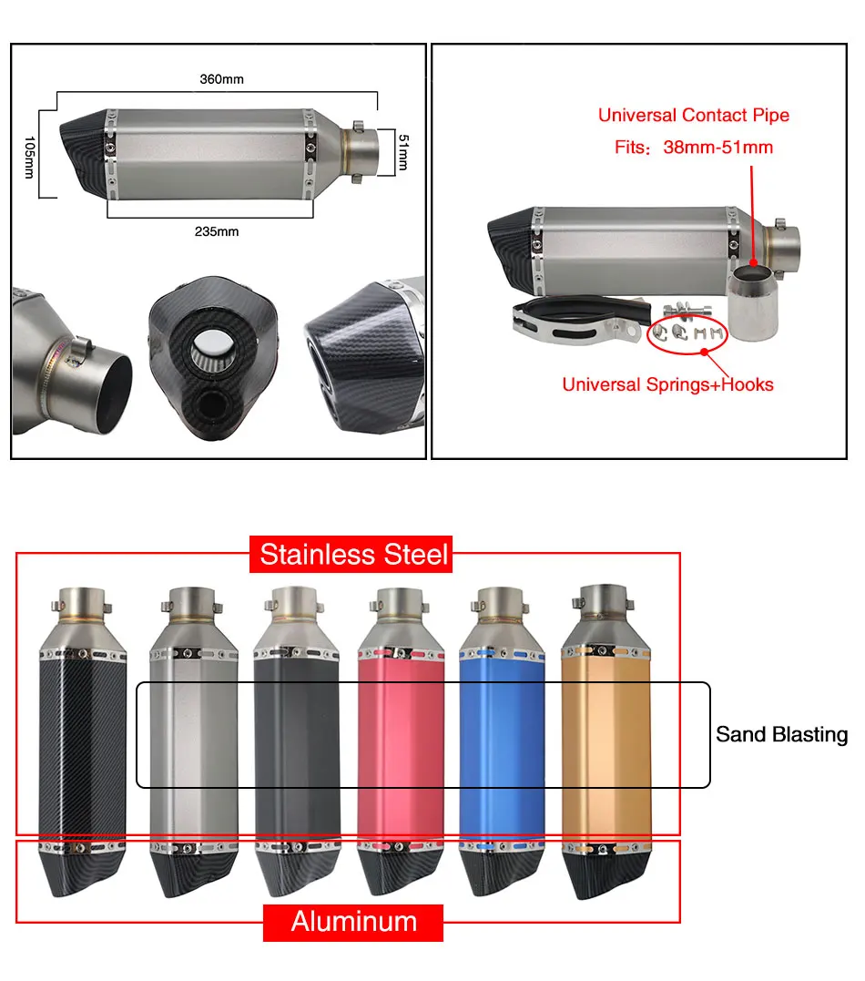 Это универсальный глушитель, который используется для велосипеда грязи, уличного велосипеда, скутера, квадроцикла и любого другого велосипеда.