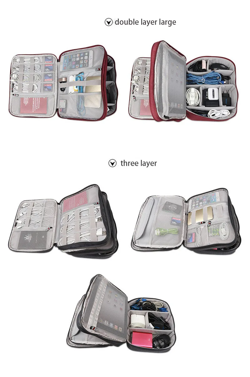Роскошный двухслойный портативный кабель сумка для хранения цифровой USB Органайзер линии передачи данных провода зарядное устройство на молнии сумка держатель банка питания