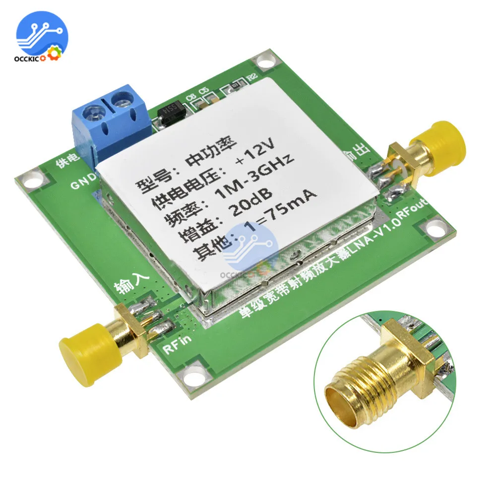 0,01-2000 МГц 1. Напряжение питания: 12 В постоянного тока (ток 35 мА) 2, усиление: 32 дБ Входное и Выходное сопротивление: 50 Ом 3, максимальная выходная мощность: 10 дБм (2VPP \ 50 Ом нагрузки) 4, Входной сигнал: <= - 22DBM (более-22 dBm вход, когда выходной сигнал был искажен) 5, полоса пропускания: от 1 МГц до 2 ГГц (различные частоты усиления отличаются, пожалуйста, обратитесь к определенным индикаторам кривой S21) 6. Уровень шума: 2 дБ (измерение 0,5 ГГц) 7, другое: нужно различное значение усиления, вы можете уменьшить напряжение питания, или таможня. 1-3000 МГц Характеристики: Напряжение питания: 12 В постоянного тока (ток 75ма) с экранированным корпусом Входное Выходное сопротивление: 50 Ом Максимальная выходная мощность: 19,5dbm (2VPP \ 50Ohm нагрузка) Входной сигнал: ≤ 0 дБм (>0 дБм вход, выходной сигнал был искажен.) Полоса пропускания: 1 МГц ~ 3 ГГц (коэффициент усиления отличается при различной частоте, пожалуйста, обратитесь к кривой индикаторов S21.) Коэффициент шума: 2 дБ (измерение на чехол 1,5 ГГц) С металлическим защитным корпусом. Другое: каждый раз, когда вам нужно различное значение усиления, может уменьшить напряжение питания. Уровень шума: F = коэффициент усиления 15,2 МГц = 17,99 дБ F = коэффициент усиления 345,2 МГц = 19,55 дБ F = коэффициент усиления 945,2 МГц = 18,09 дБ F = 1,500 ГГц усиление = 16,16 дБ F = коэффициент усиления 1,955 ГГц = 15,77 дБ F = 2,295 ГГц усиление = 14,11 дБ F = 2,610 ГГц усиление = 13,60 дБ F = коэффициент усиления 2,895 МГц = 12,56дб Примечание: 1. Переход: 1 см = 10 мм = 0,39 дюйма 2. Допускается погрешность 0-3 мм из-за ручного измерения. 3. Из-за разницы между различными мониторами изображение может не отражать фактический цвет изделия. Спасибо!