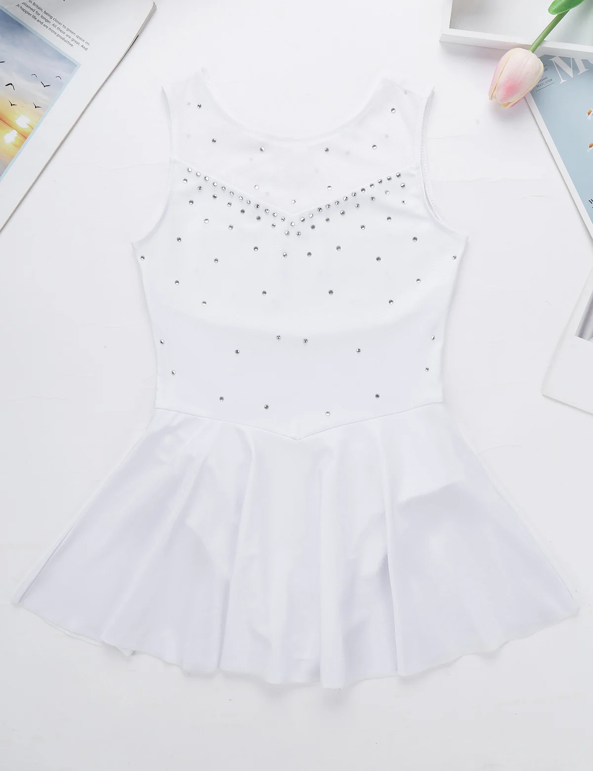 Платье для катания на коньках изготовлено из полиэстера и тюля, ручная стирка.