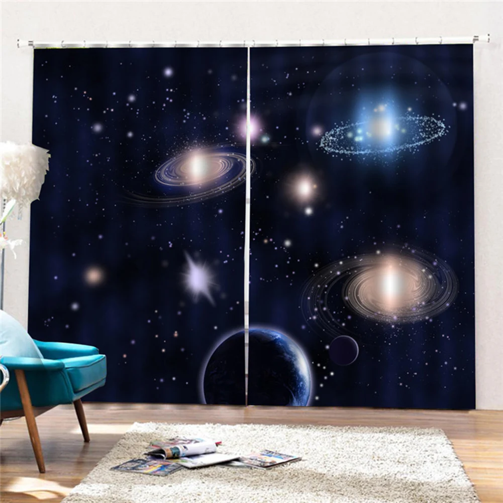 2 шт. 75x166 см Космос Планета свет Блокировка окна занавеска для балкона Декор патио