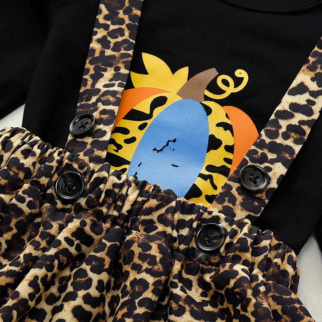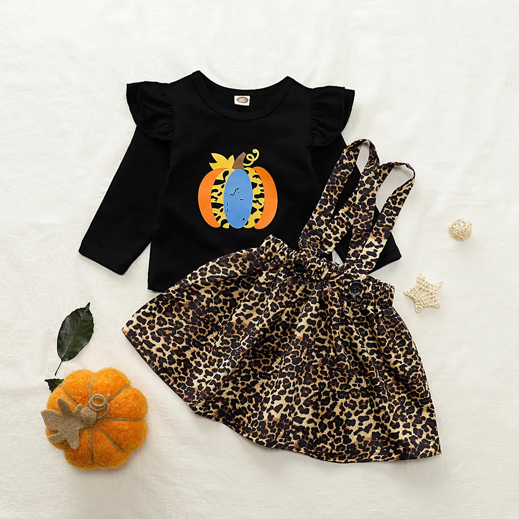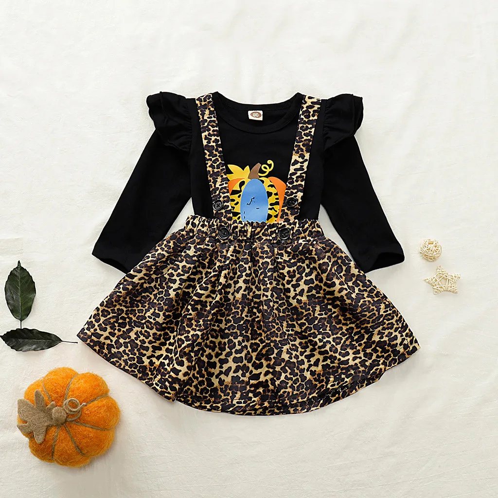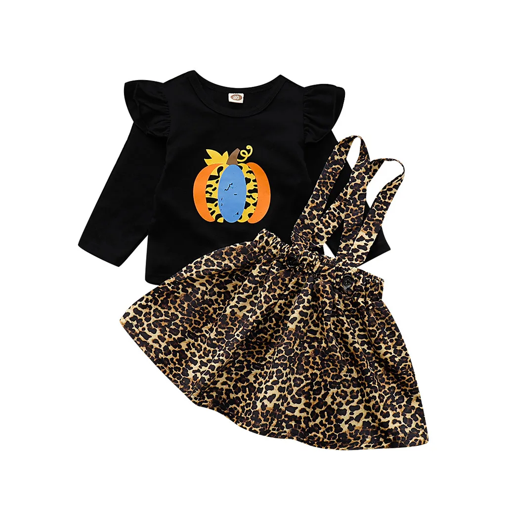 Топы для маленьких девочек на Хэллоуин с принтом тыквы, леопардовое платье принцессы