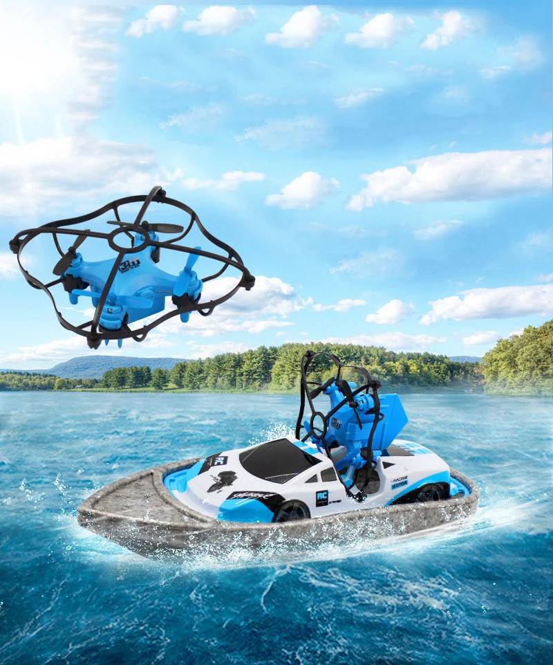 Пункты маркированного списка: 1. 【 3 режима в одной форме-3-в-1 удовольствие от инновационного радиоуправляемого дрона, который превращается в автомобиль на воздушной подушке или на дистанционном управлении за считанные секунды-никаких инструментов не требуется. 2. 【Безголовый режим 】-после активации пилот может лететь на Дрон в любое место без необходимости беспокоиться о том, в каком направлении находится Дрон. Сильная стабильность и легкость управления. 3. 【 360 FLIPS и ROLLS】-просто нажмите кнопку на передатчике, и вы получите 360 градусов флип, вверх/вниз/влево поворот/вправо поворот/вперед/назад/левая сторона fly/правая сторона fly. 4. 【 светодиодный светильник-творчески Разработанный светодиодный светильник предназначен для использования в ночном полете, оставляя красивый пейзаж в ночном небе. 5. 【 водонепроницаемый дизайн 】-оснащен водонепроницаемым резиновым кольцом и пеной для защиты внутренних аксессуаров автомобиля, даже за рулем на воде, очень интересные небеса, наземные и водные игрушки. Описание: 1. Режим дистанционного управления автомобилем: Легко скользят по нескольким поверхностям, включая ковёр, бетон, асфальт, упакованную землю и многое другое. 2. Режим ховеркрафта: Включите этот режим, когда он находится в мелководье без волн. 3. Режим дрона: Сделайте любое внутреннее пространство вашей игровой площадки. Полет прост-даже для начинающих. Безопасный режим угла обеспечивает самонивелирующийся и ограниченный шаг и банковские углы, чтобы сохранить ремесло стабильным и ровным, когда вы отпустите палочки. 4. Возврат одной кнопки Дрон может лететь обратно автоматически в соответствии с координатами снятия просто, чтобы сделать мини-Дрон легким в эксплуатации. 5. Характеристики продукта: лодка с дистанционным управлением/автомобиль с дистанционным управлением/самолет. Защита от низкого напряжения. Защита от перегрузки по току. Горизонтальный коррекции. Быстрая/медленная функция файла. 3D рулона. Одна кнопка возврата. Безголовый режим. Информация о товаре: Материал: АБС + электронные компоненты Пульт дистанционного управления: 2,4 ГГц Время зарядки: около 30 минут Срок службы: около 6-8 минут Емкость аккумулятора: 150 мАч (в комплекте) Батарея дистанционного управления: 3 * AAA (щелочная батарея) Цвет изделия: синий, красный Размер продукта: около 24,5*11,5*11 см/9,65*4,53 * 4.33in Размер упаковки: около 26,5*12*13 см/10,43*4,72 * 5.12in Упаковка: одноцветная упаковка Примечание: После того, как изделие разобрано, держите сумку подальше от детей и не позволяйте детям играть. Советы: 1. Из-за ручного измерения допускается погрешность в 1-3 см. 2. Из-за разрешения, яркости, контрастности и т. д. экрана компьютера, фактический цвет может немного отличаться от изображения, надеюсь, вы понимаете. Комплектация: Дрон * 1 Автомобильный * 1 Дно корабля * 1 Зарядный кабель-1 шт. Корпус батареи * 1 * 4 винта Руководство * 1