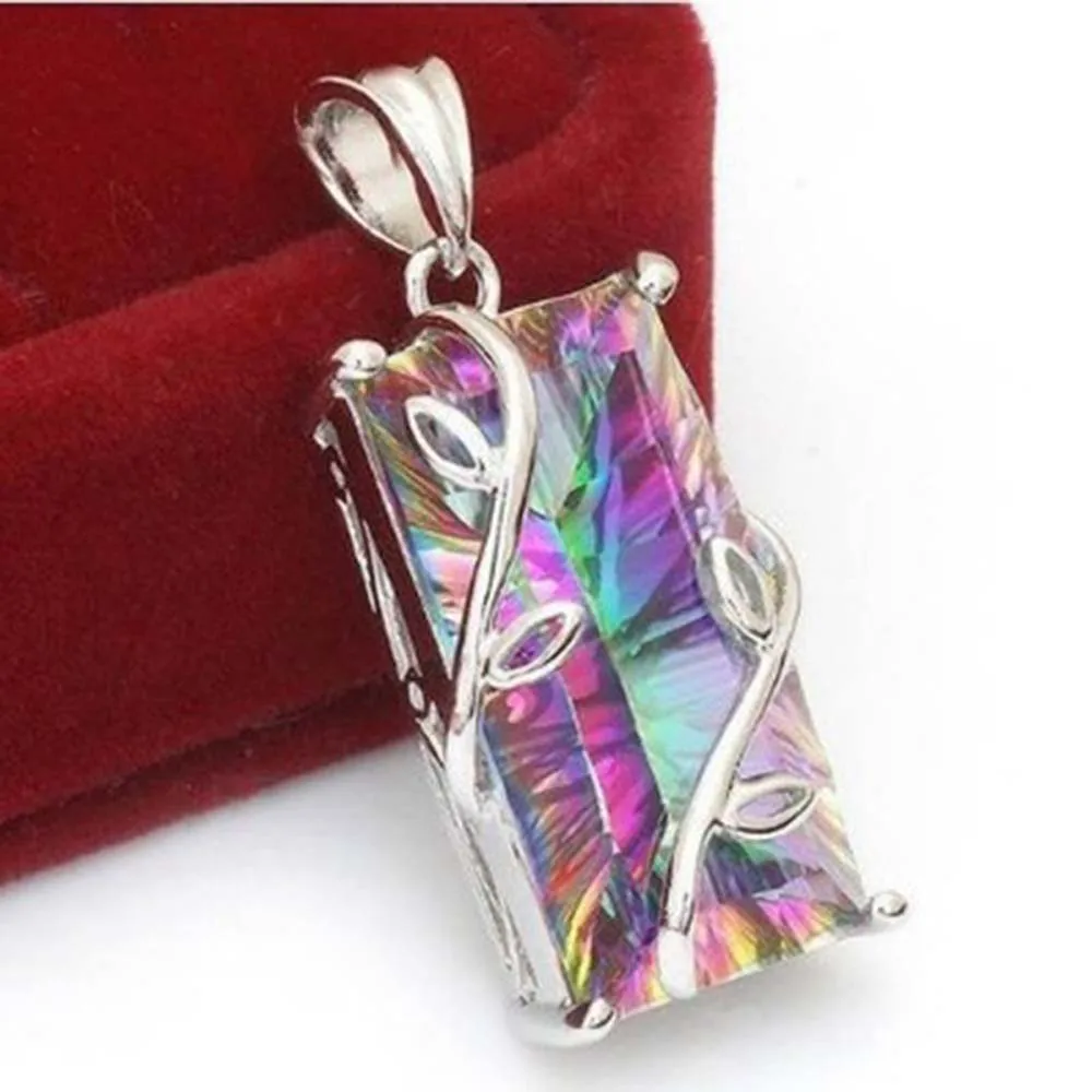 Длина: 76 см Материал: сплав + стекло Цвет: Радуга Цвет Кулон: 1,5*3,6 см В комплект входит: ожерелье 1 шт.