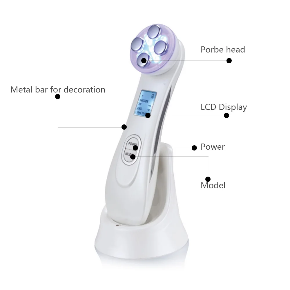 Электропорционный инструмент для красоты, фокусирует импорт электропорации, бесигольную мезотерапию, радиочастотный ток RF, микроволновые импульсы и IPL средство против акне пять основных технологий наконечника, позволяет синхронизировать решение многих лет проблем, и светящийся естественный молодой цвет вашей кожи!
