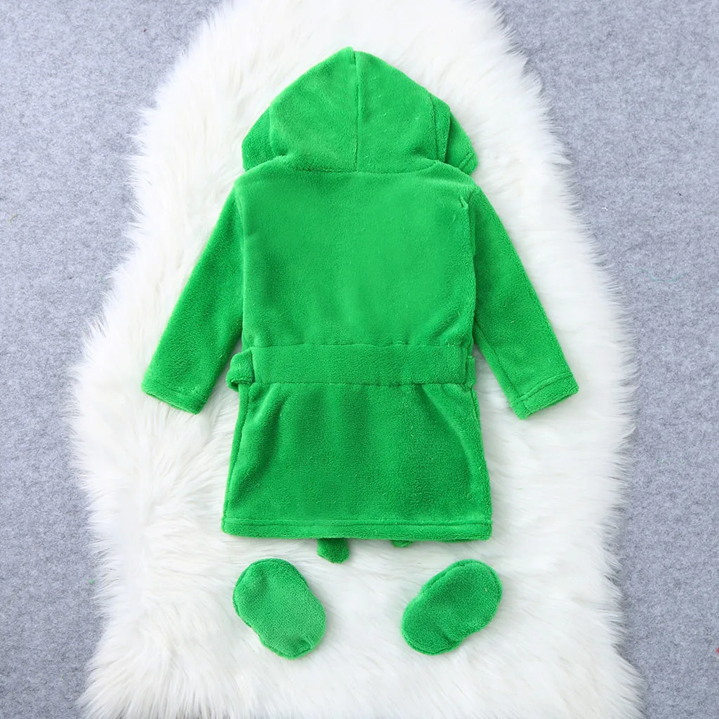 Фланелевые банные халаты с капюшоном для маленьких мальчиков и девочек; одежда для сна + обувь